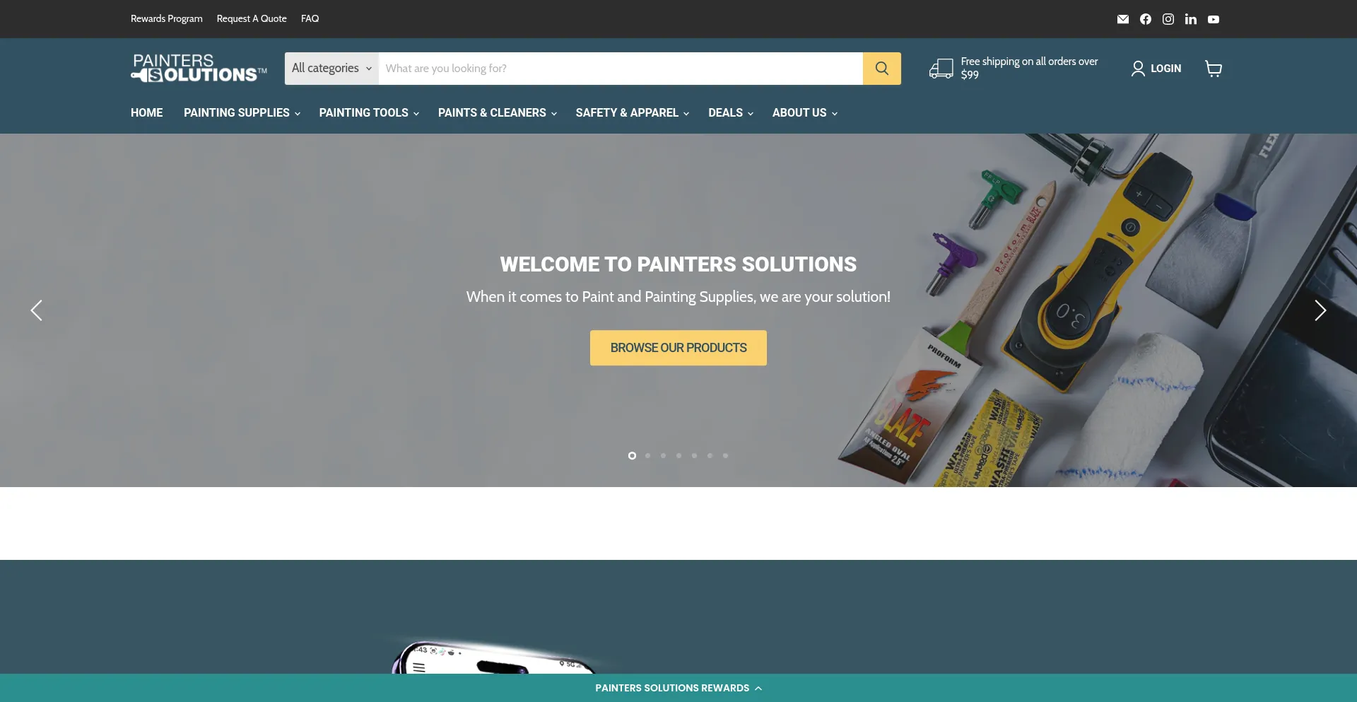 Our analyzer determines that website painterssolutions.com is using Shopify CMS. Shopify is a popular e-commerce platform, powering around 4.4% of websites globally.