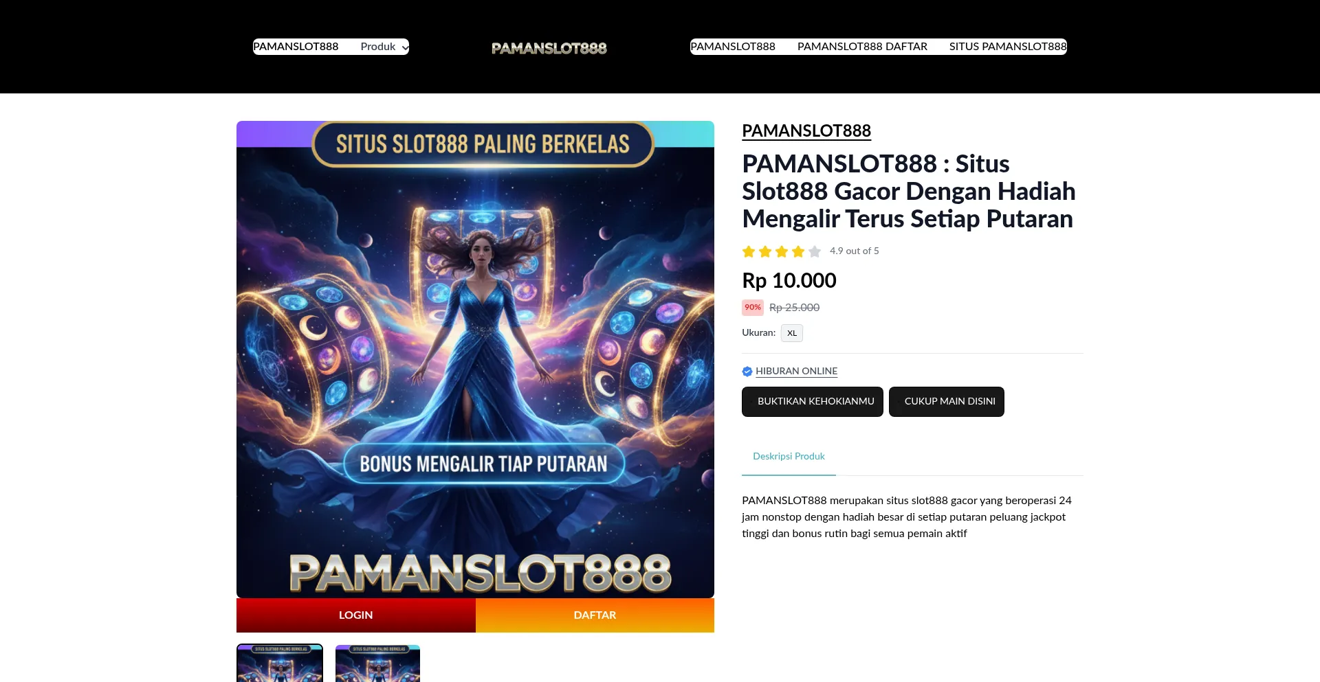 PAMANSLOT888 merupakan situs slot888 gacor yang beroperasi 24 jam nonstop dengan hadiah besar di setiap putaran peluang jackpot tinggi dan bonus rutin bagi semua pemain aktif