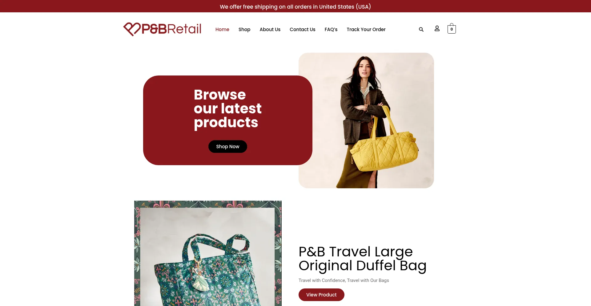 Analysis indicates that pandbretailllc.com operates as an e-commerce platform facilitating online transactions for goods or services. The website implements shopping cart functionality, payment processing systems, and product catalog features typical of commercial retail operations.