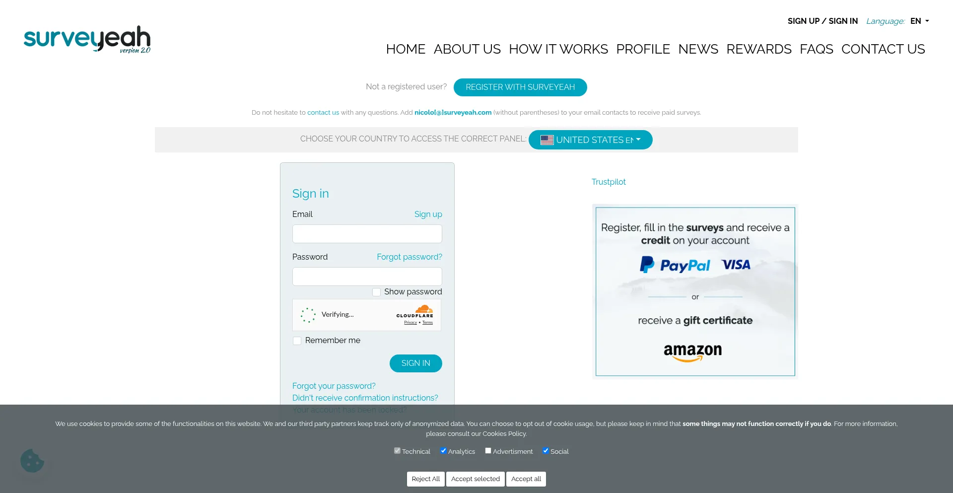 The website implements cookie consent mechanisms in compliance with privacy regulations such as GDPR or CCPA. This demonstrates that panel.surveyeah.com adheres to data protection standards and provides users with control over personal data collection practices.