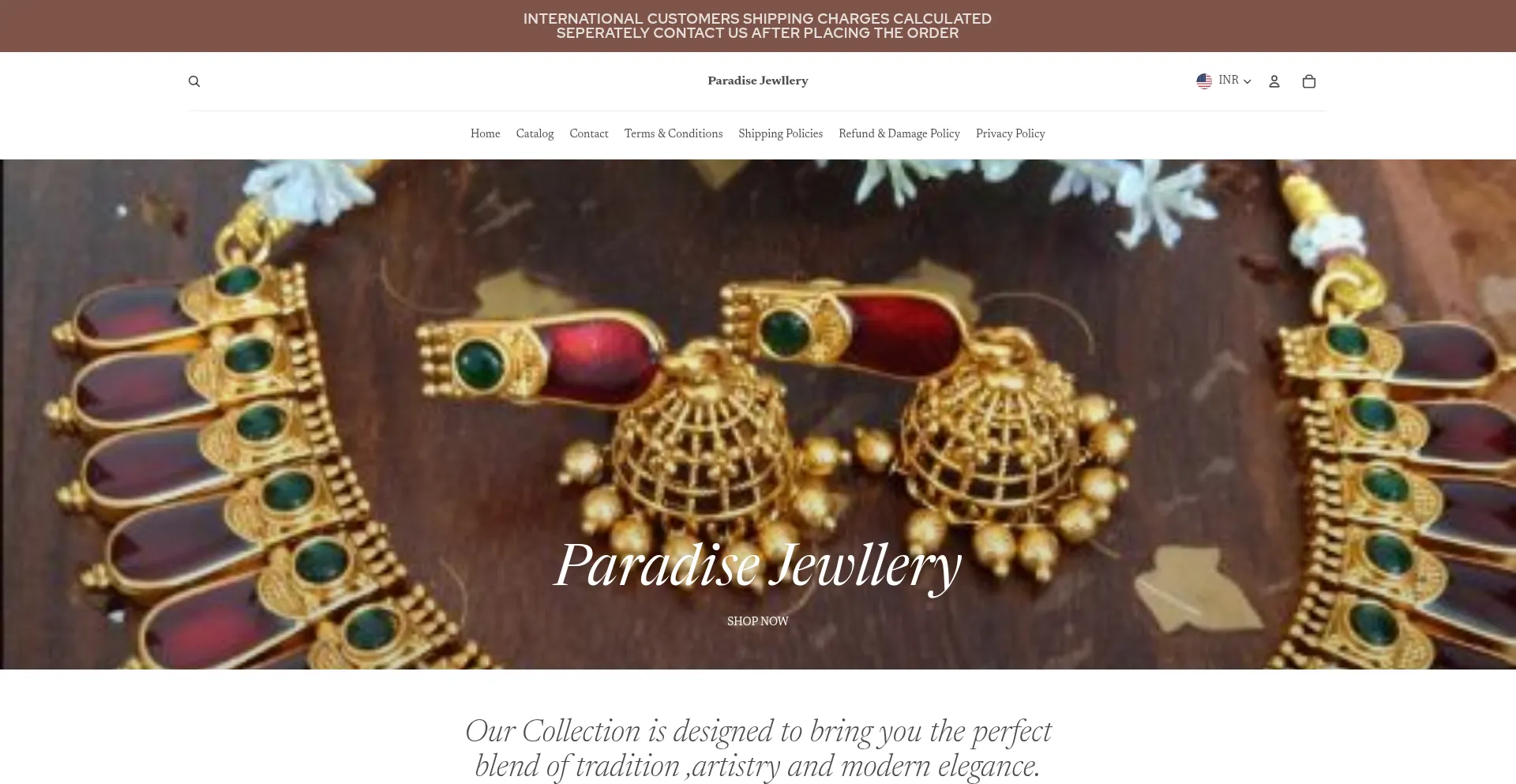 Our analyzer determines that website paradisejewllery.co.in is using Shopify CMS. Shopify is a popular e-commerce platform, powering around 4.4% of websites globally.