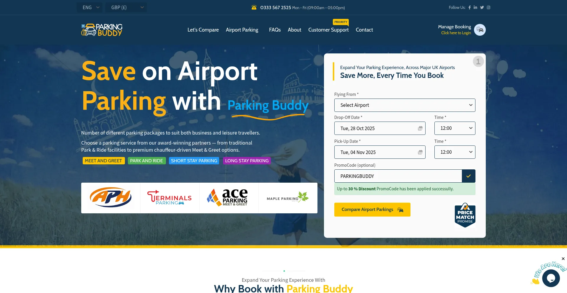 Here at Parking Buddy, we offer best comparison from cheapest to secure parking deals across all major UK Airports which suits everyone's needs.