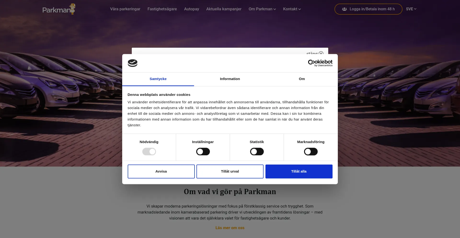 The website implements cookie consent mechanisms in compliance with privacy regulations such as GDPR or CCPA. This demonstrates that parkman.nu adheres to data protection standards and provides users with control over personal data collection practices.