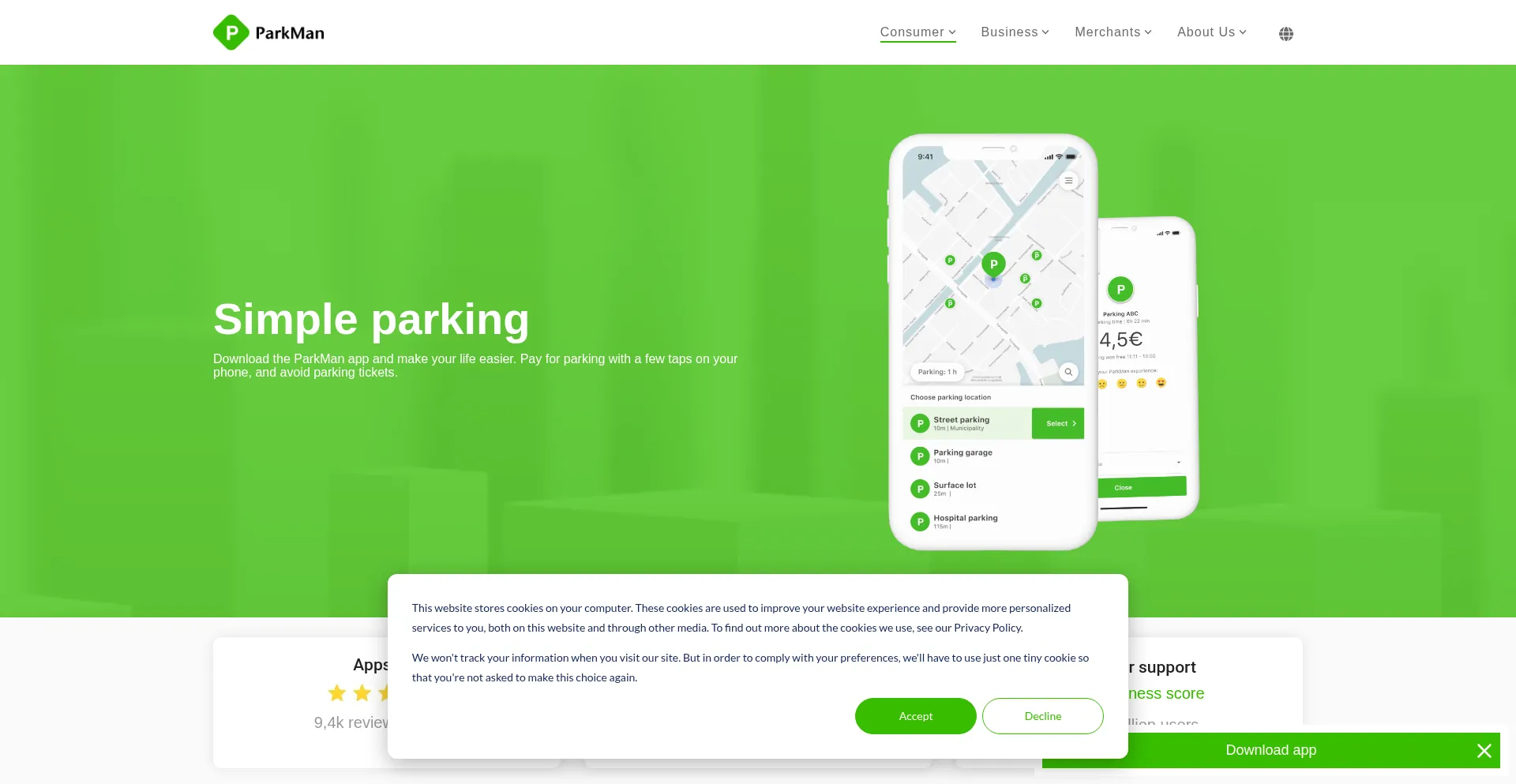 Pay for street parking, garage parking, airport parking through the app. Experience easy parking with ParkMan, download now!