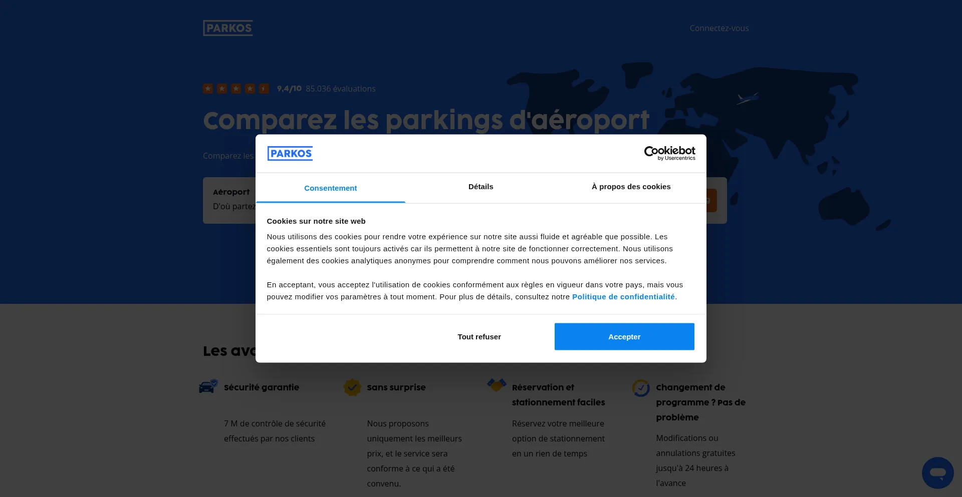The website implements cookie consent mechanisms in compliance with privacy regulations such as GDPR or CCPA. This demonstrates that parkos.fr adheres to data protection standards and provides users with control over personal data collection practices.