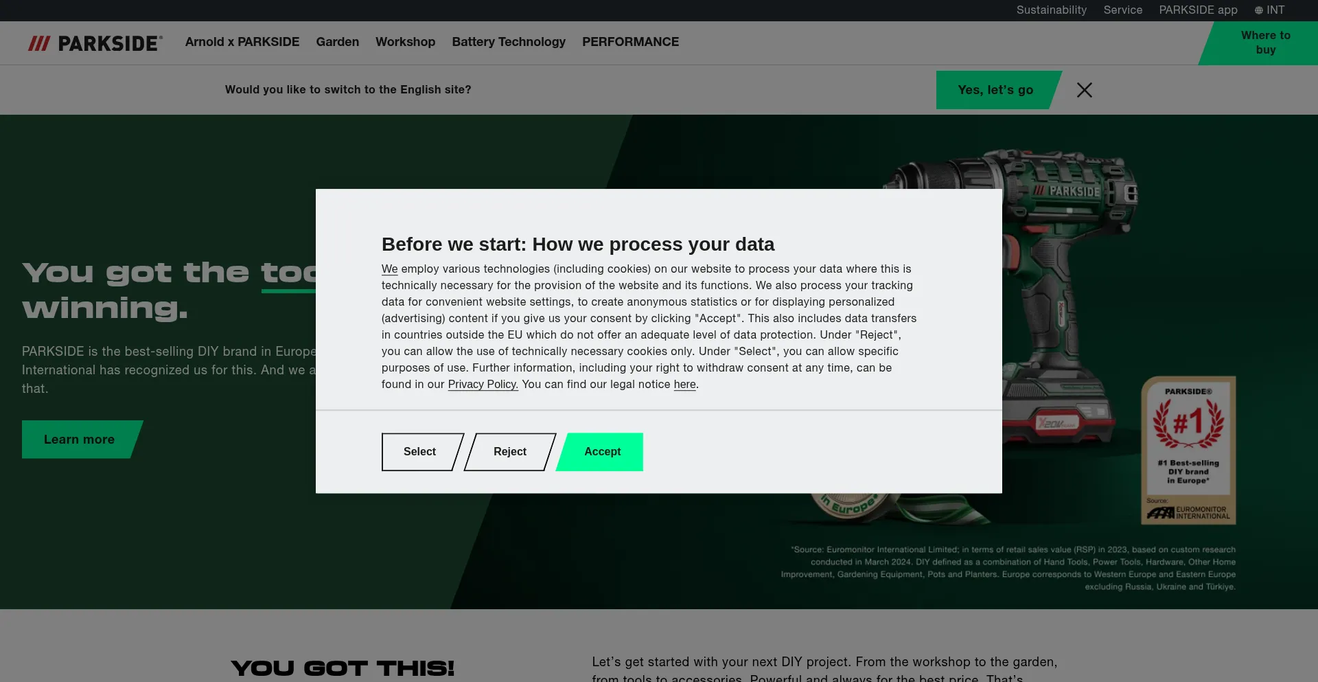 The website implements cookie consent mechanisms in compliance with privacy regulations such as GDPR or CCPA. This demonstrates that parkside-diy.com adheres to data protection standards and provides users with control over personal data collection practices.