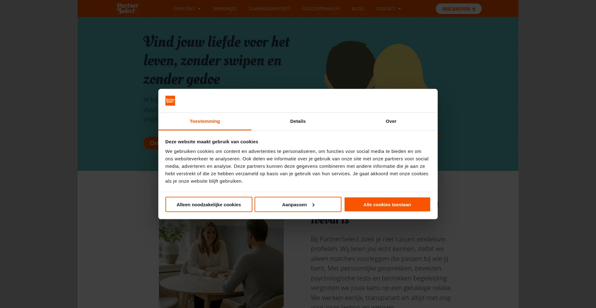 Zoek je een duurzame relatie? PartnerSelect biedt professionele matchmaking in Nederland. Ontdek onze persoonlijke aanpak en succesverhalen.