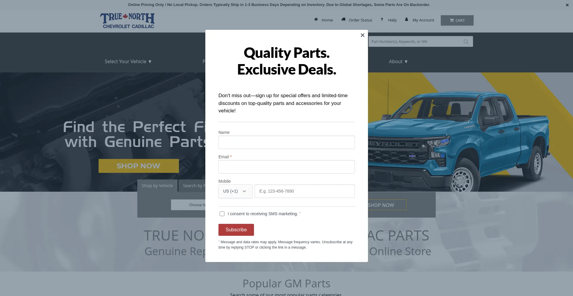The parts.truenorthchev.com website implements data collection forms that may request personal information including names, email addresses, phone numbers, or other sensitive details. Users should verify the legitimacy of it and review privacy policies before submitting personal data.