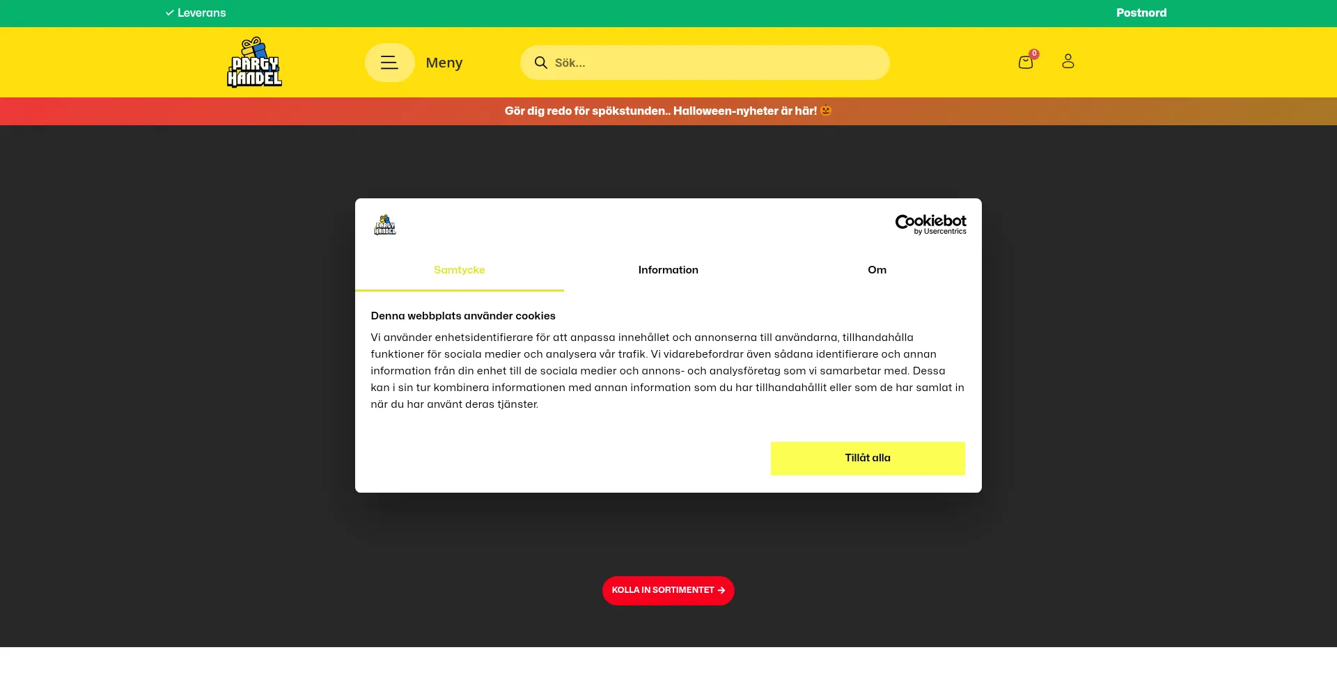 The website implements cookie consent mechanisms in compliance with privacy regulations such as GDPR or CCPA. This demonstrates that partyhandel.se adheres to data protection standards and provides users with control over personal data collection practices.
