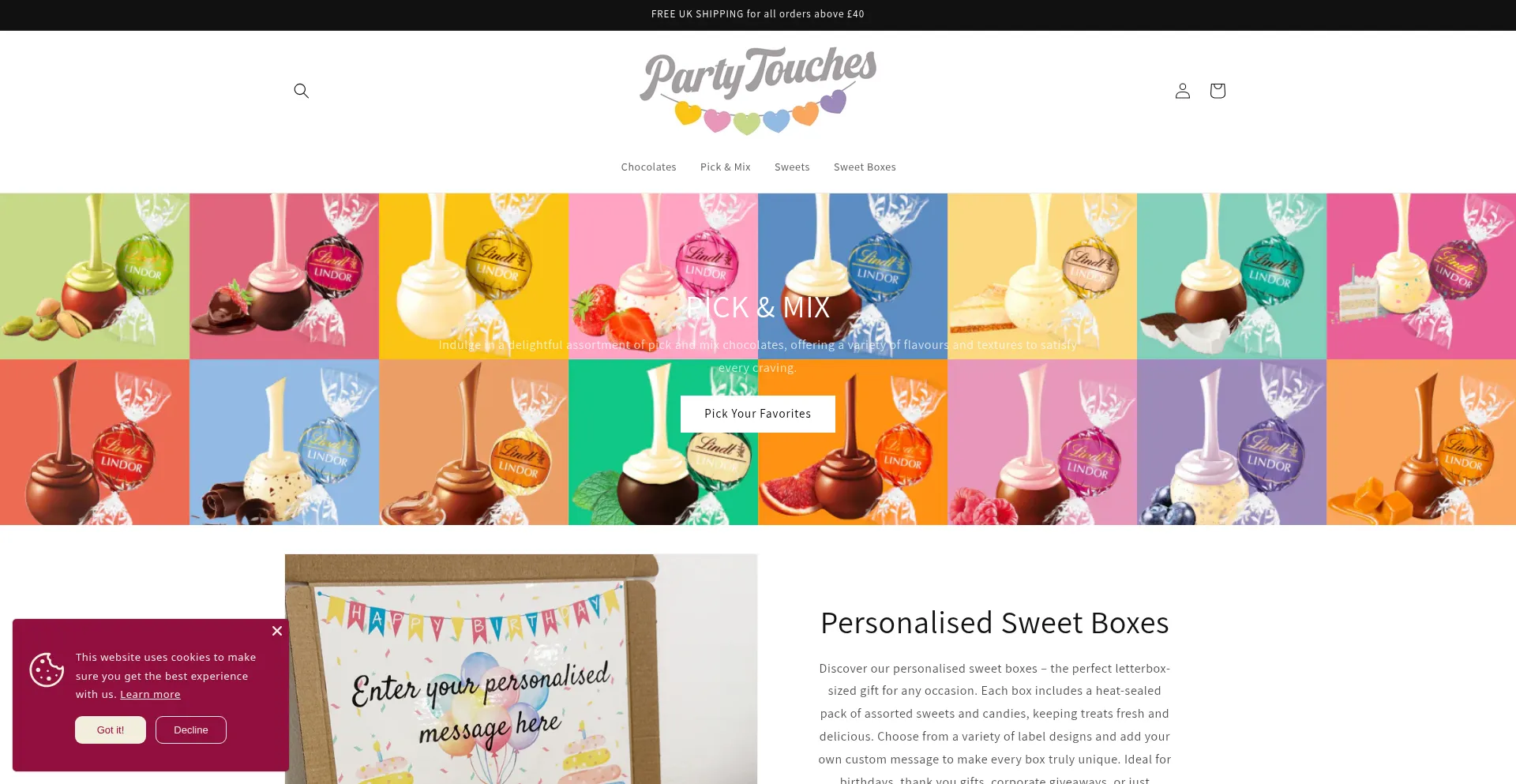 Our analyzer determines that website partytouches.co.uk is using Shopify CMS. Shopify is a popular e-commerce platform, powering around 4.4% of websites globally.