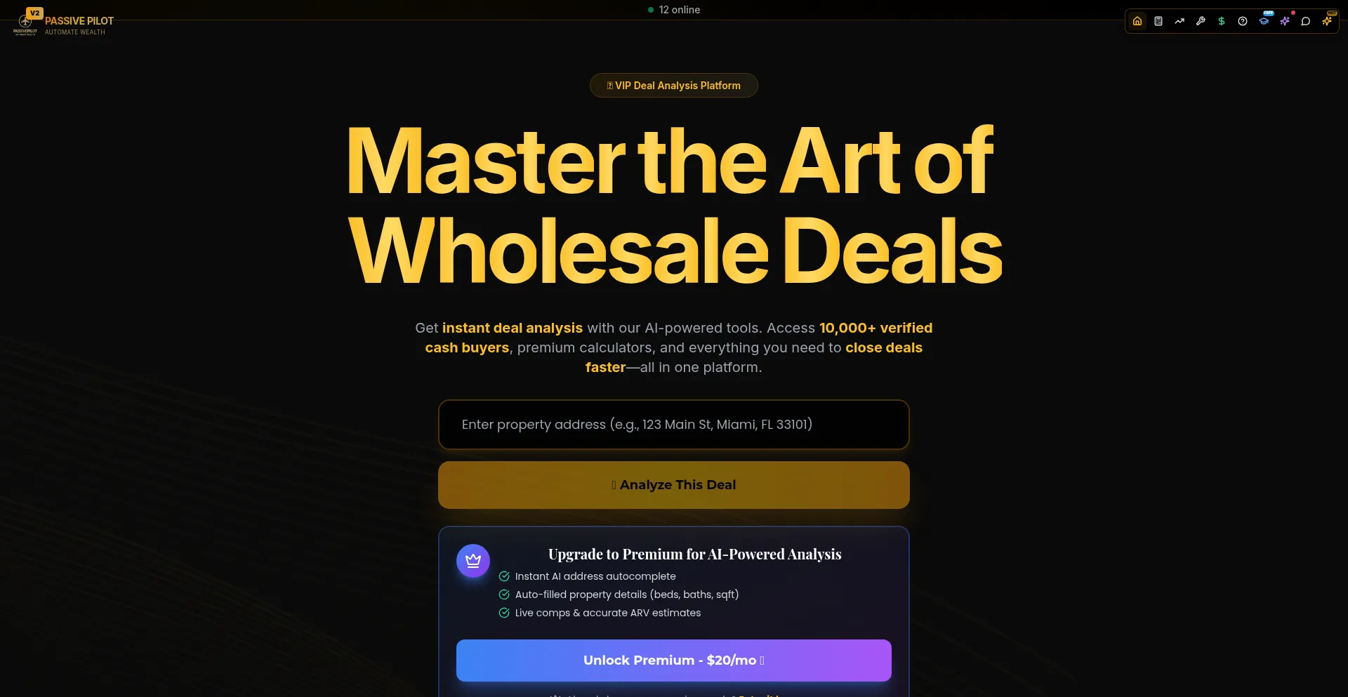 Get lowball offers in seconds. Close more deals. Professional real estate wholesale deal analyzer tool.