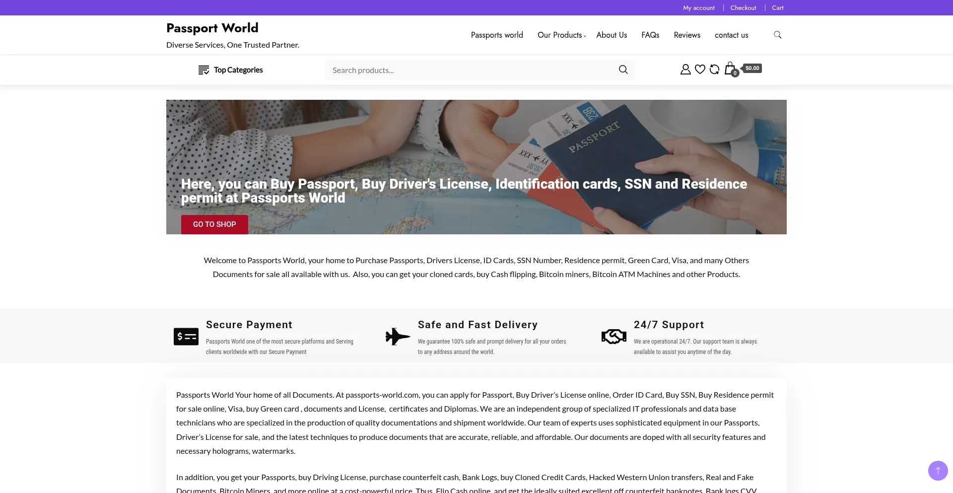 Passports-world.com operates as a suspicious website with multiple red flags that compromise its trustworthiness and user safety. The platform exhibits concerning characteristics including misleading information, questionable operational practices, or potential malware distribution that poses significant risks to visitors.