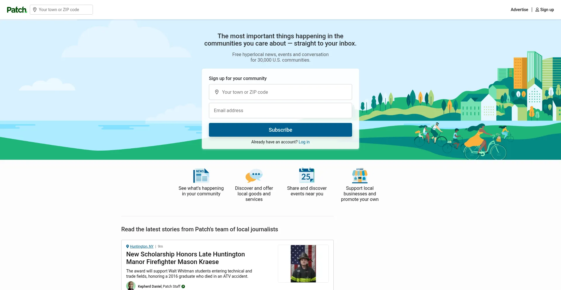 We scanned patch.com and found it to be legitimate. Our analysis shows a high trust score of 80/100, indicating this website appears to be very safe to use.