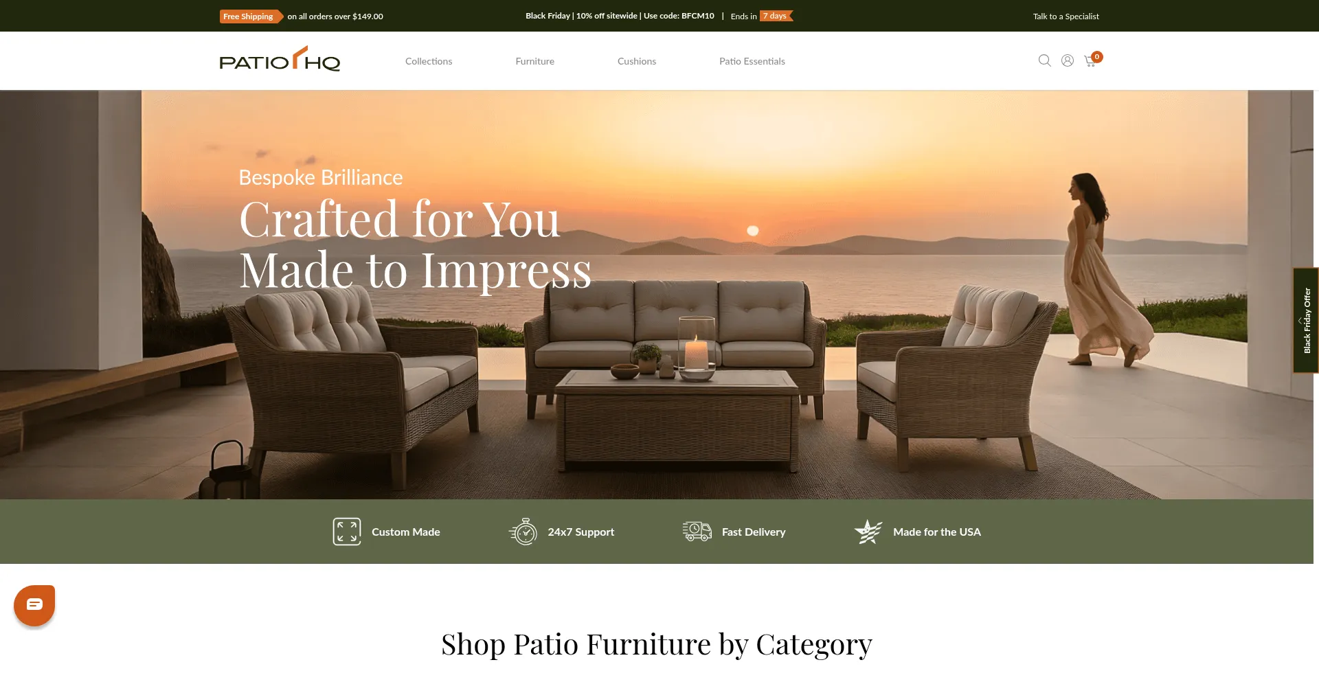 Analysis indicates that patiohq.com operates as an e-commerce platform facilitating online transactions for goods or services. The website implements shopping cart functionality, payment processing systems, and product catalog features typical of commercial retail operations.