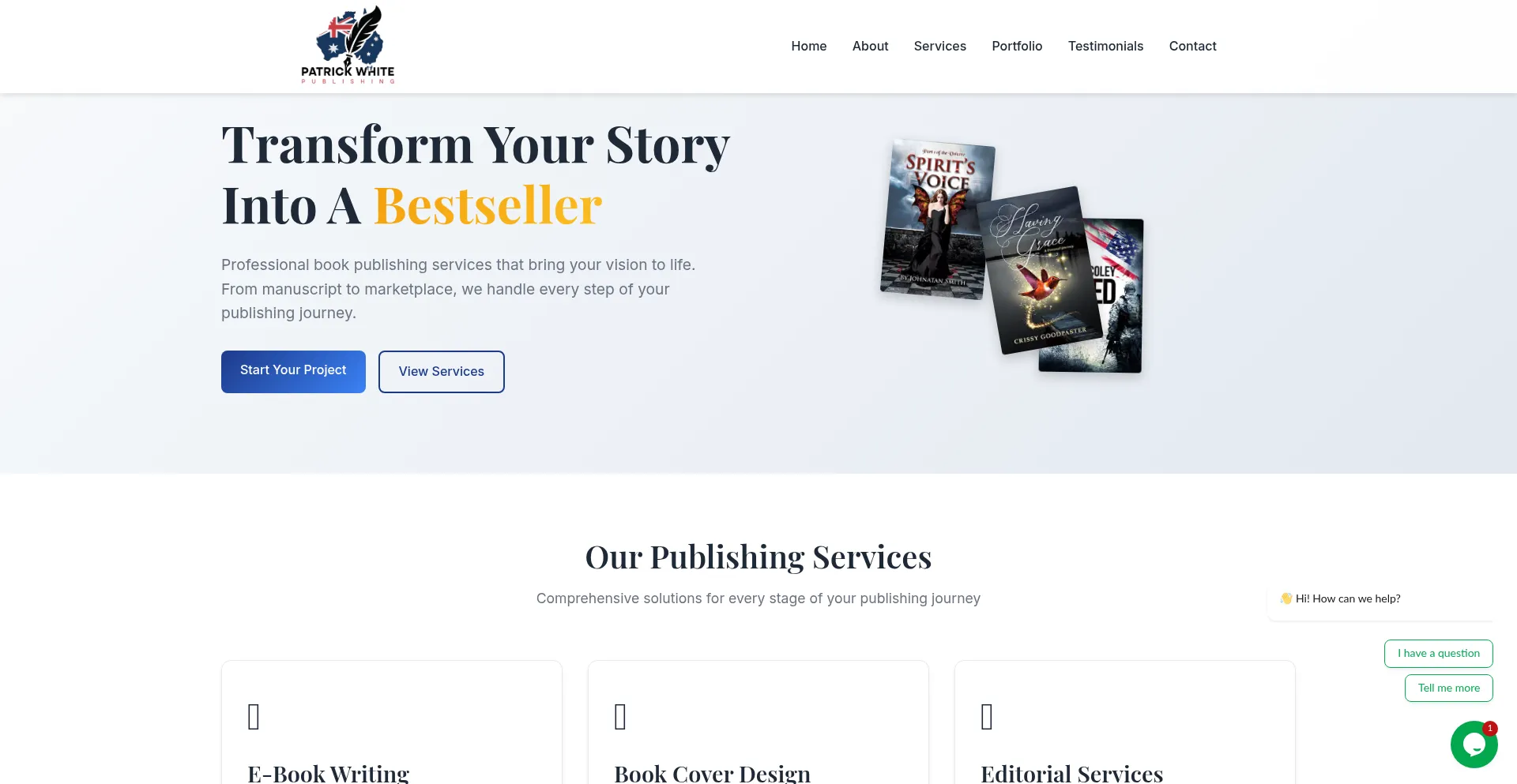 Transform your manuscript into a bestseller with Patrick White Publishing. Expert book writing, editing, design, and marketing services for authors worldwide.