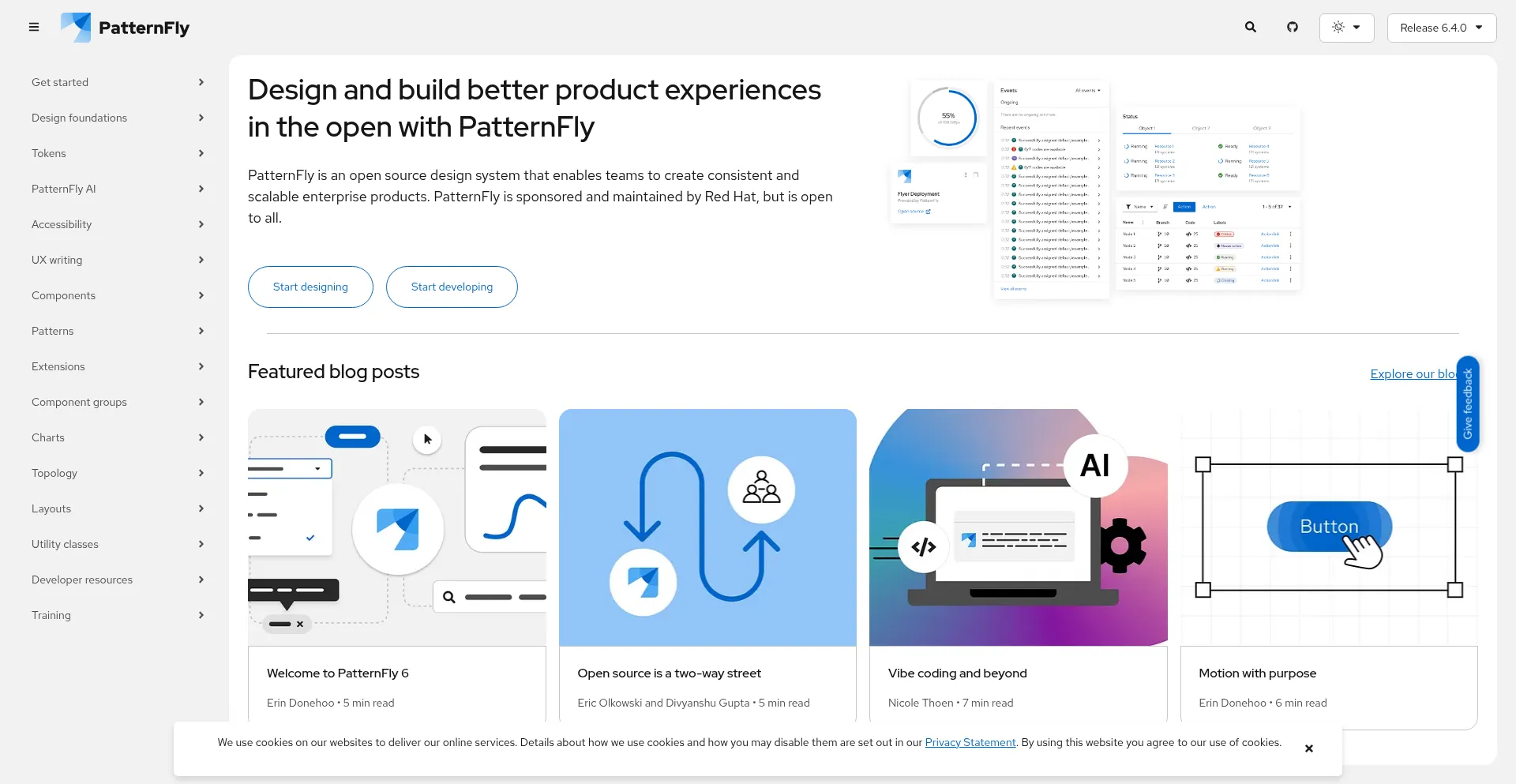 The website implements cookie consent mechanisms in compliance with privacy regulations such as GDPR or CCPA. This demonstrates that patternfly.org adheres to data protection standards and provides users with control over personal data collection practices.