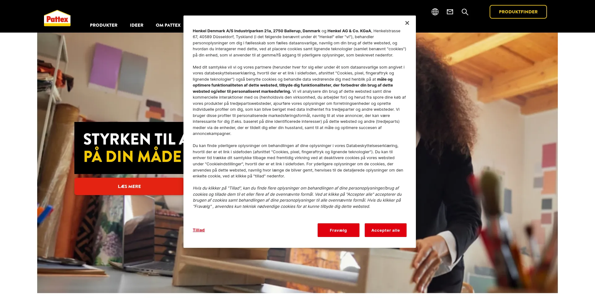 The website implements cookie consent mechanisms in compliance with privacy regulations such as GDPR or CCPA. This demonstrates that pattex.dk adheres to data protection standards and provides users with control over personal data collection practices.