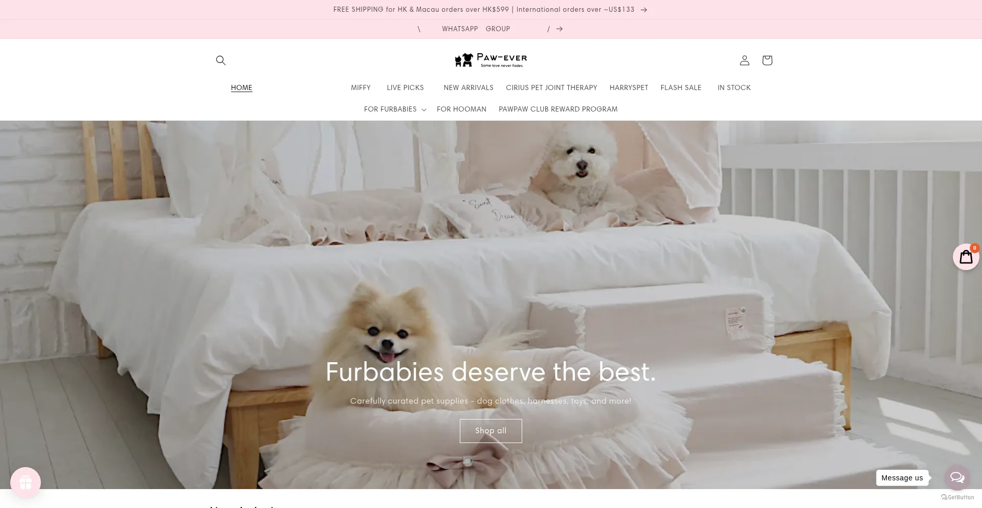 Analysis indicates that paw-ever.com operates as an e-commerce platform facilitating online transactions for goods or services. The website implements shopping cart functionality, payment processing systems, and product catalog features typical of commercial retail operations.