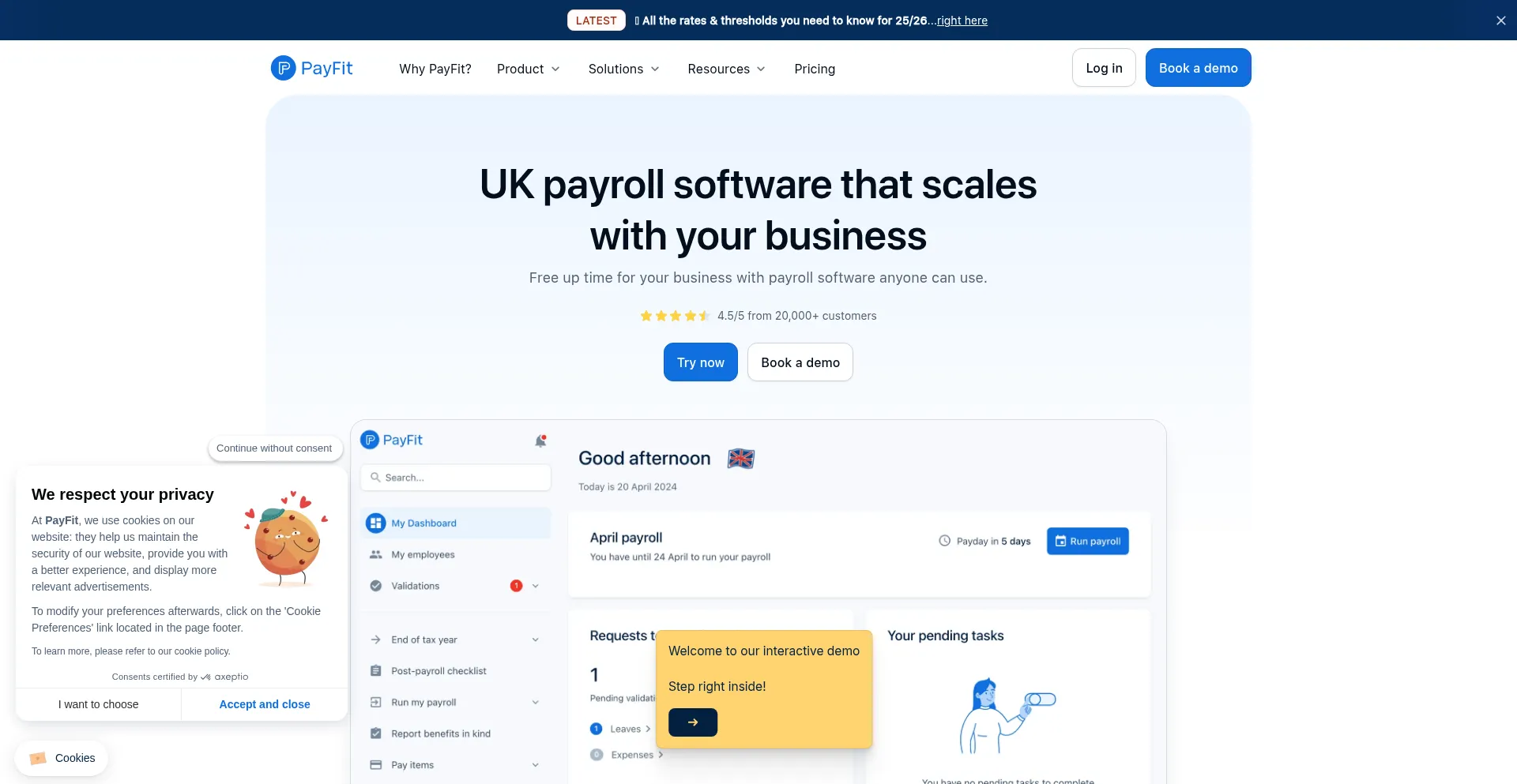 The website implements cookie consent mechanisms in compliance with privacy regulations such as GDPR or CCPA. This demonstrates that payfit.com adheres to data protection standards and provides users with control over personal data collection practices.