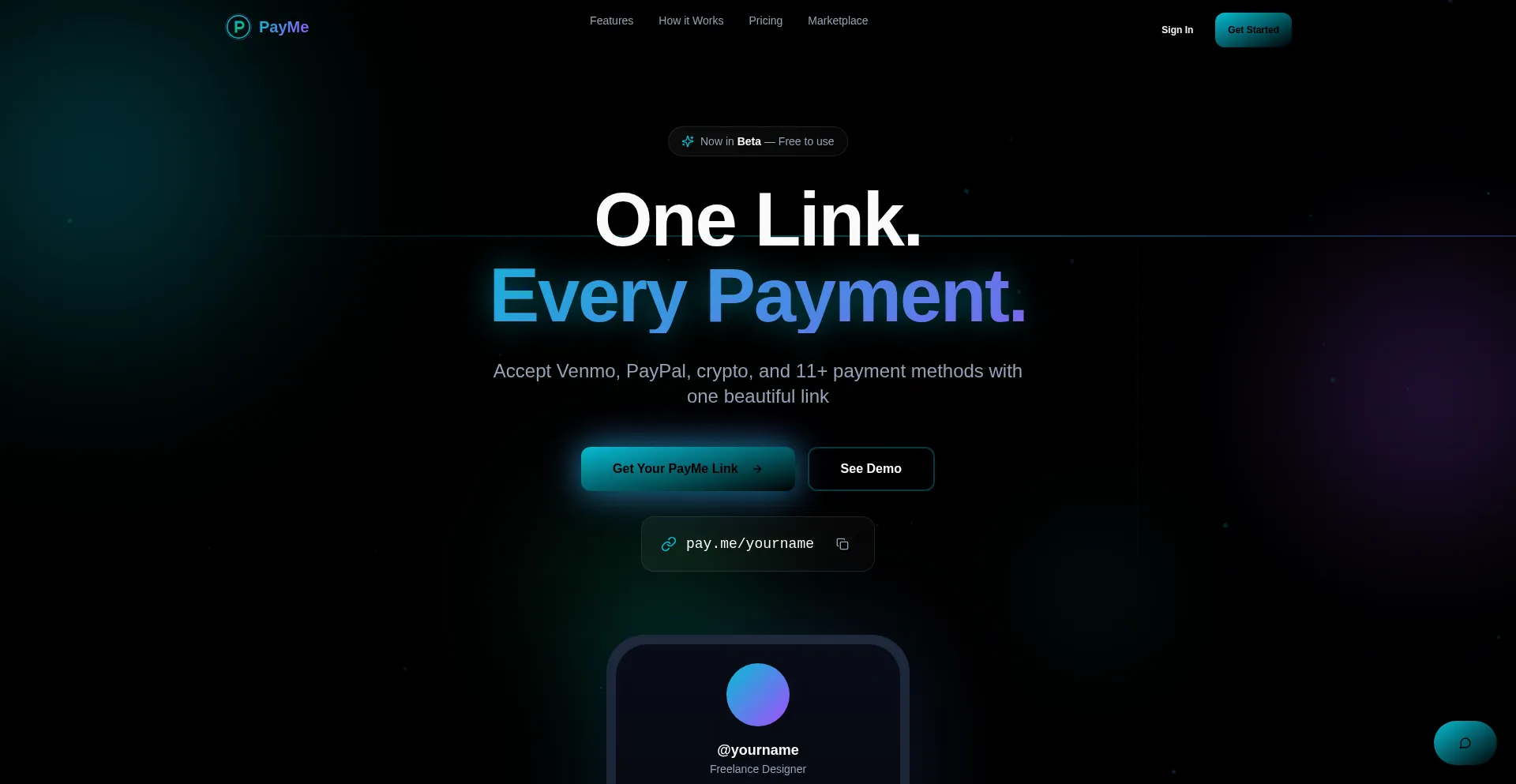 Accept Venmo, PayPal, Cash App, crypto & 12+ payment methods with one beautiful link. Get paid faster with PayMe.