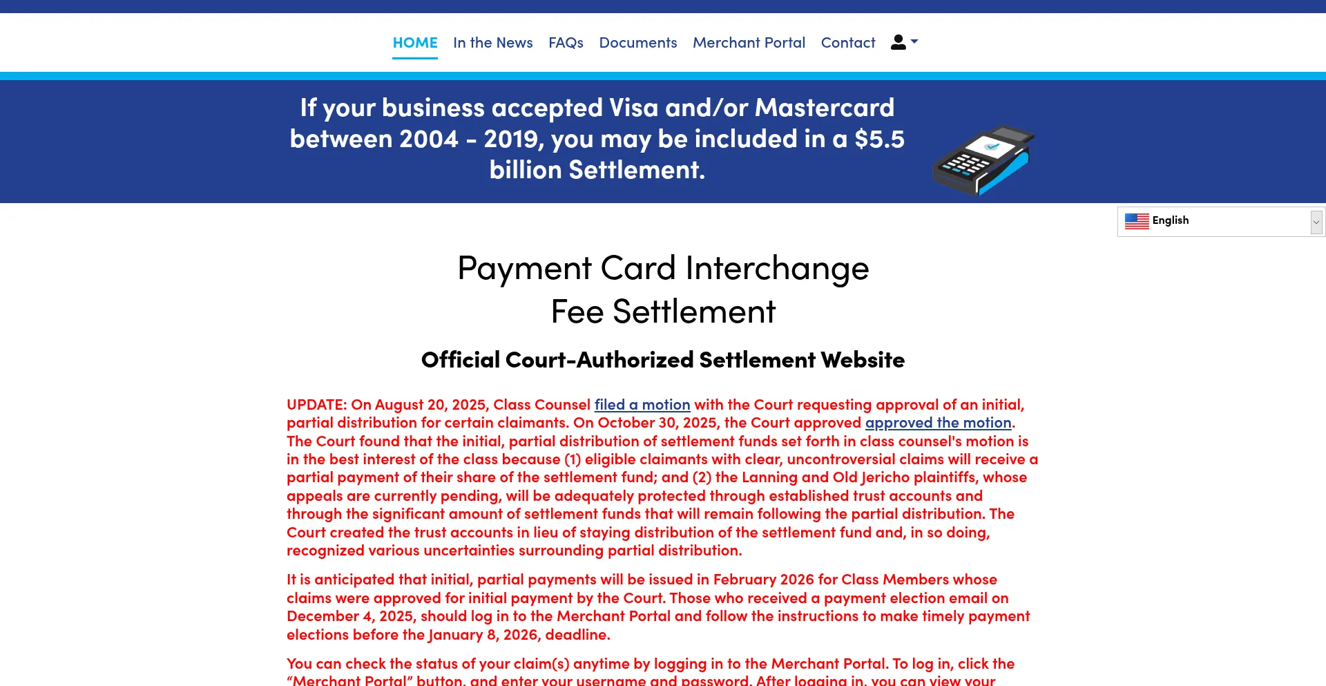 Payment Card Settlement | Official Court-Authorized Website - Home
