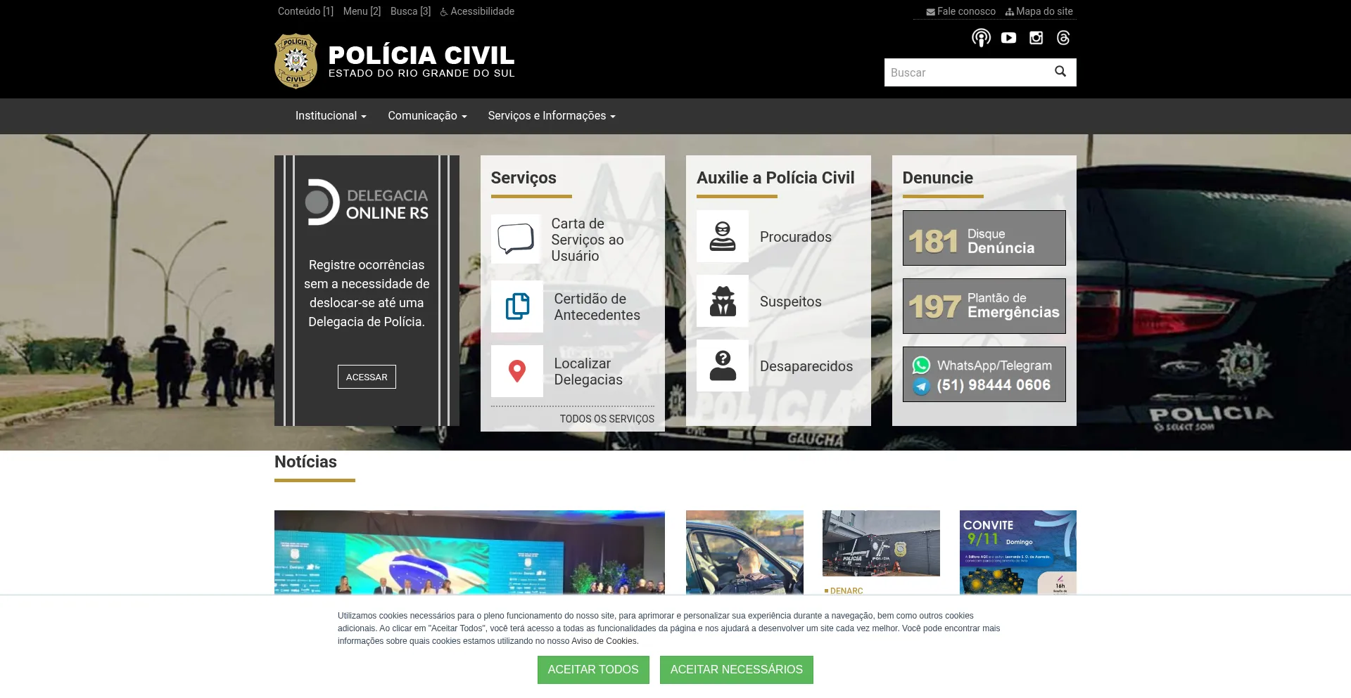 Portal institucional e de serviços da Polícia Civil do Estado do Rio Grande do Sul