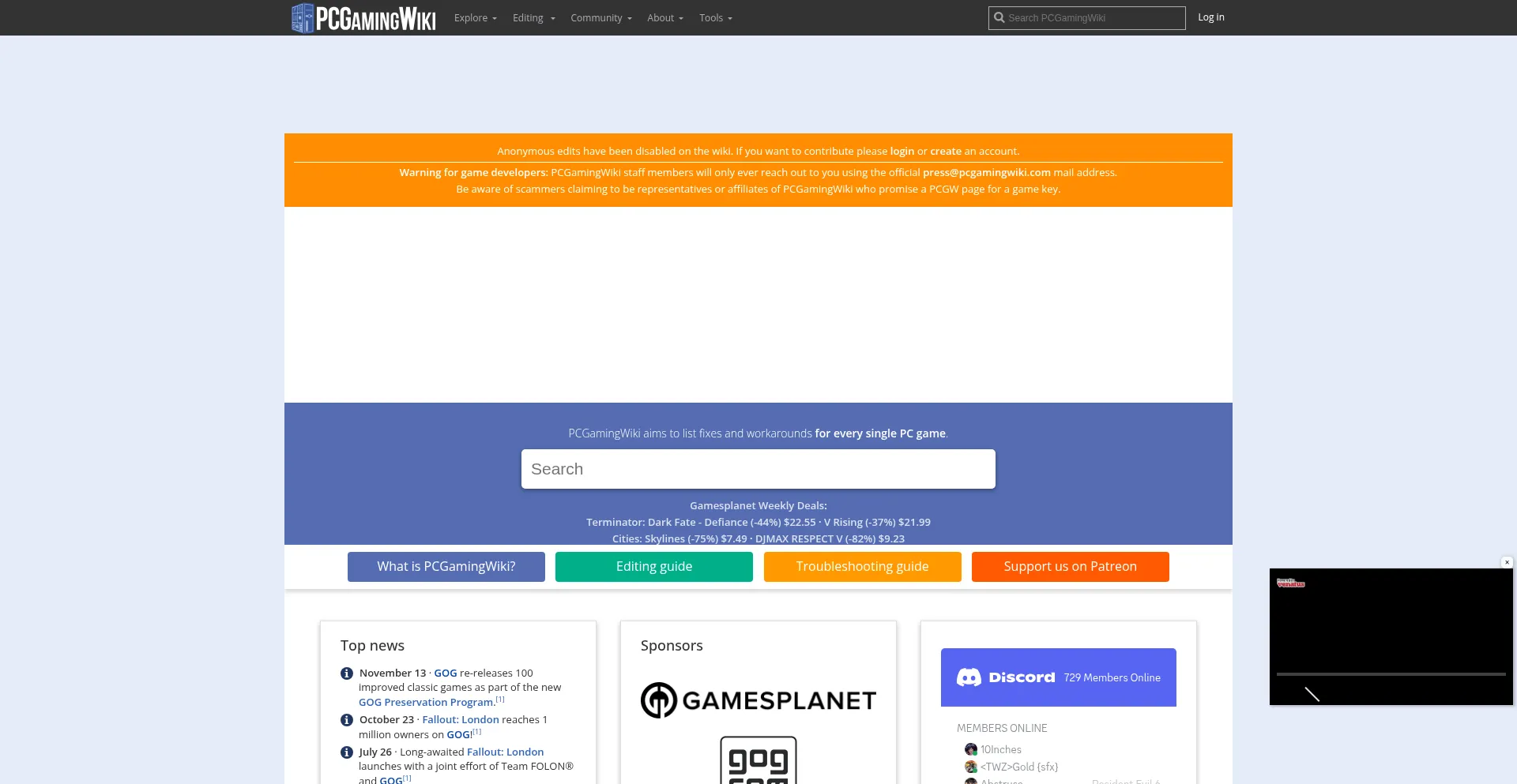 PCGamingWiki PCGW - an encyclopedia of PC game fixes