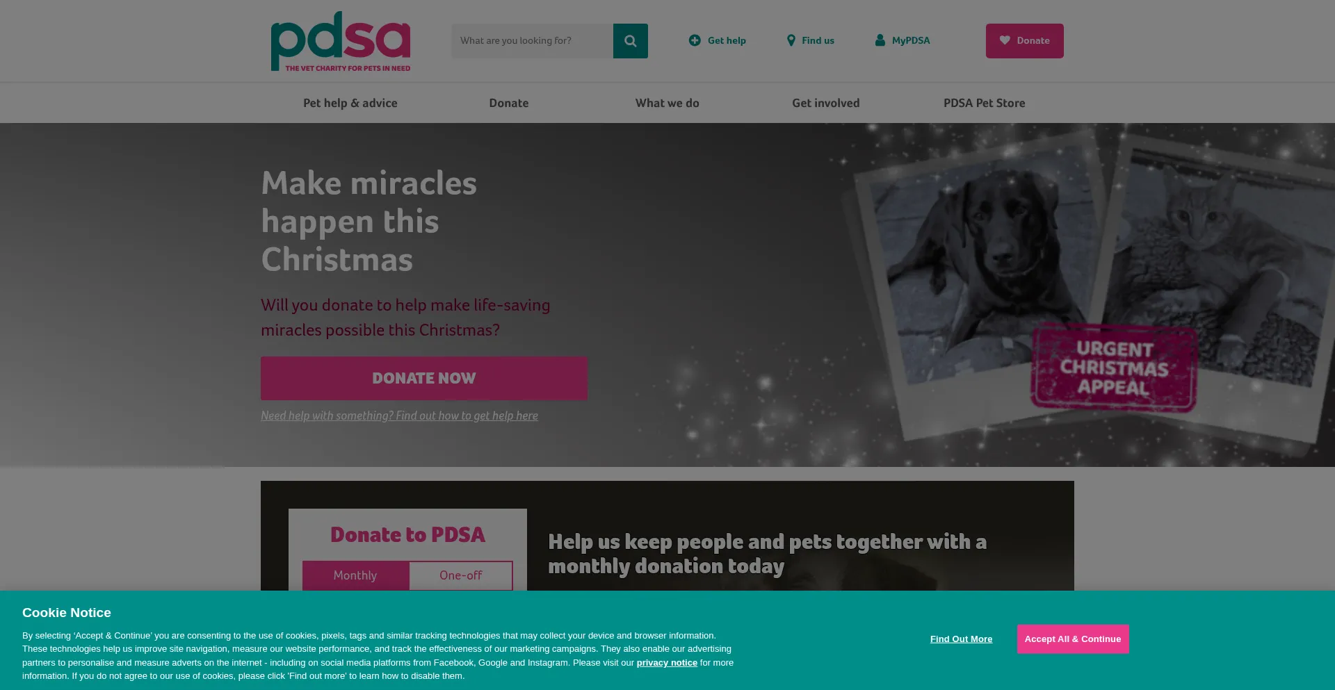 The website implements cookie consent mechanisms in compliance with privacy regulations such as GDPR or CCPA. This demonstrates that pdsa.org.uk adheres to data protection standards and provides users with control over personal data collection practices.