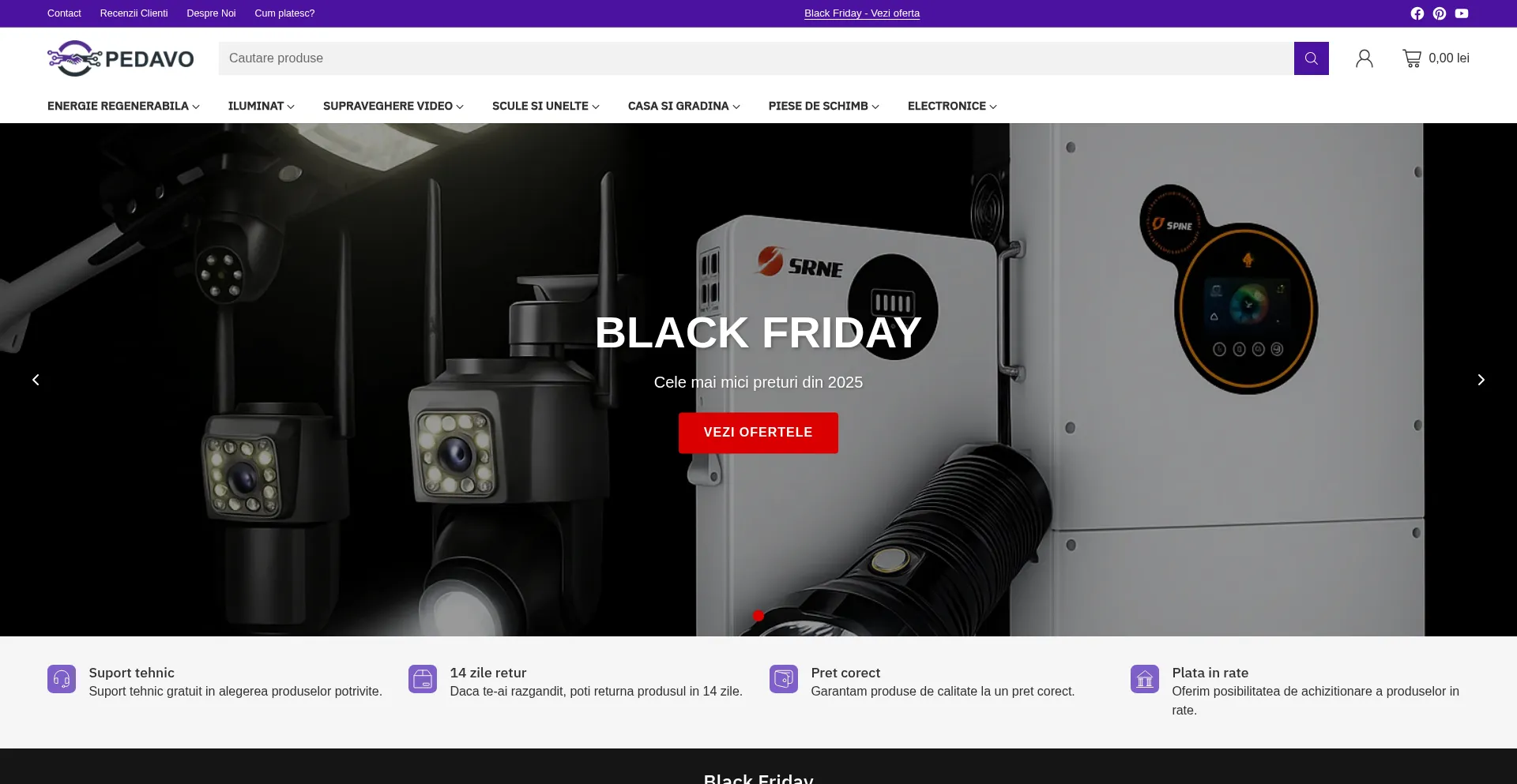 The pedavo.ro website utilizes free e-commerce platform solutions, which may indicate cost-conscious operations but could also suggest limitations in security features, customer support, or advanced functionality compared to enterprise-grade solutions.