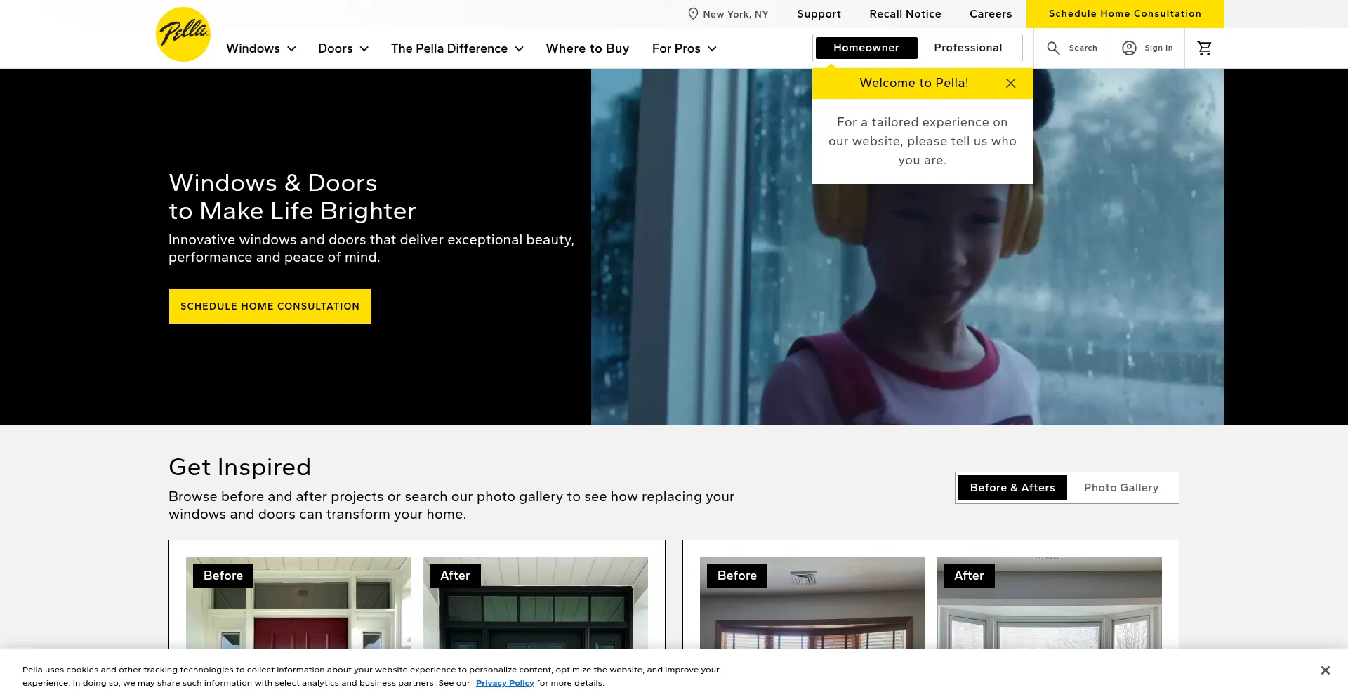 The website implements cookie consent mechanisms in compliance with privacy regulations such as GDPR or CCPA. This demonstrates that pella.com adheres to data protection standards and provides users with control over personal data collection practices.