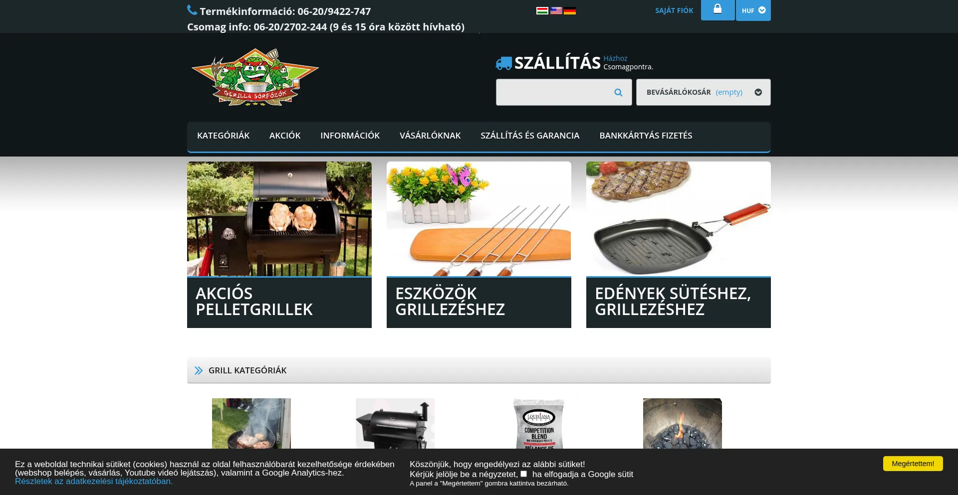 Analysis indicates that pelletgrill.hu operates as an e-commerce platform facilitating online transactions for goods or services. The website implements shopping cart functionality, payment processing systems, and product catalog features typical of commercial retail operations.