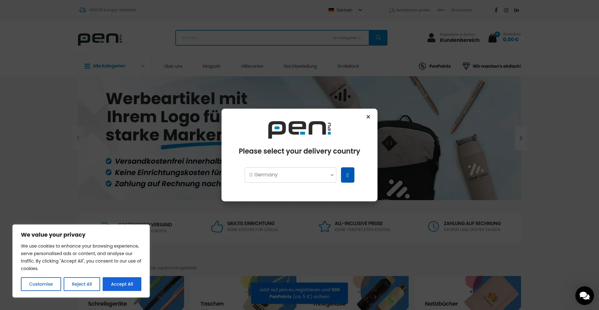 Analysis indicates that pen.eu operates as an e-commerce platform facilitating online transactions for goods or services. The website implements shopping cart functionality, payment processing systems, and product catalog features typical of commercial retail operations.