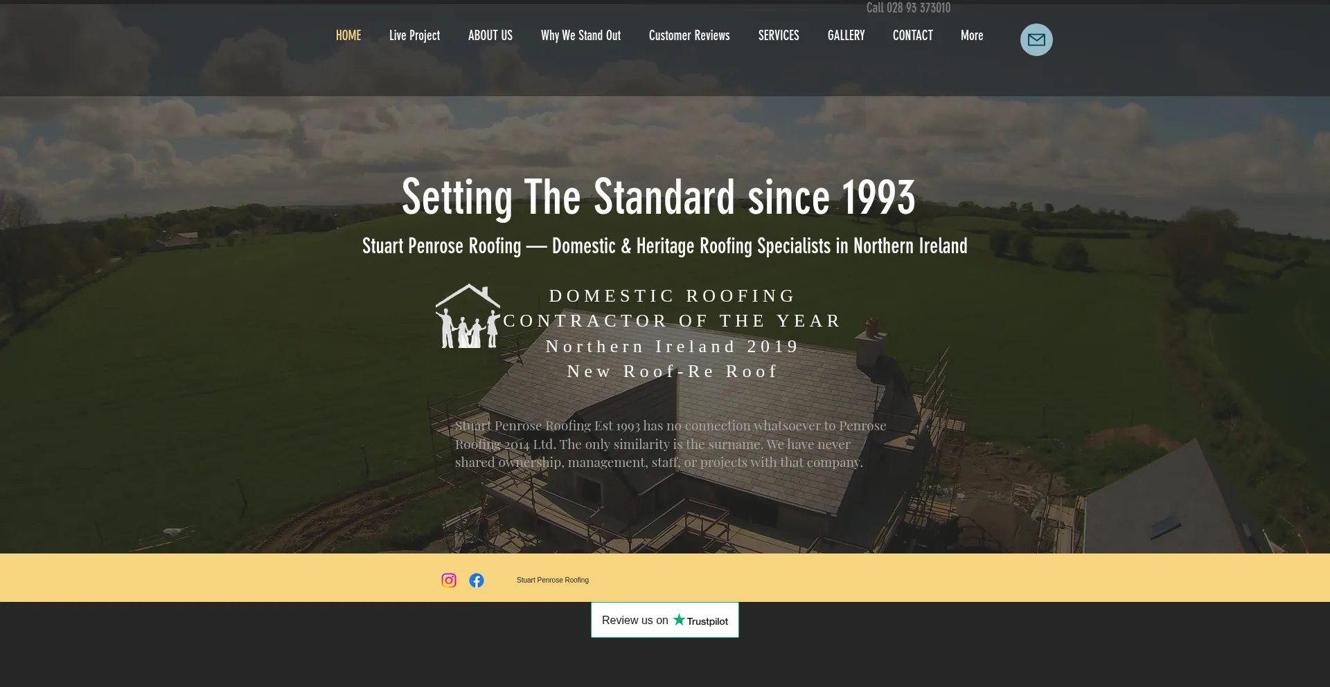 Stuart Penrose Roofing — established 1993, award-winning domestic and heritage roofing contractor. Highest Trustpilot rating in NI. Not connected to Penrose Roofing 2014 Ltd.”