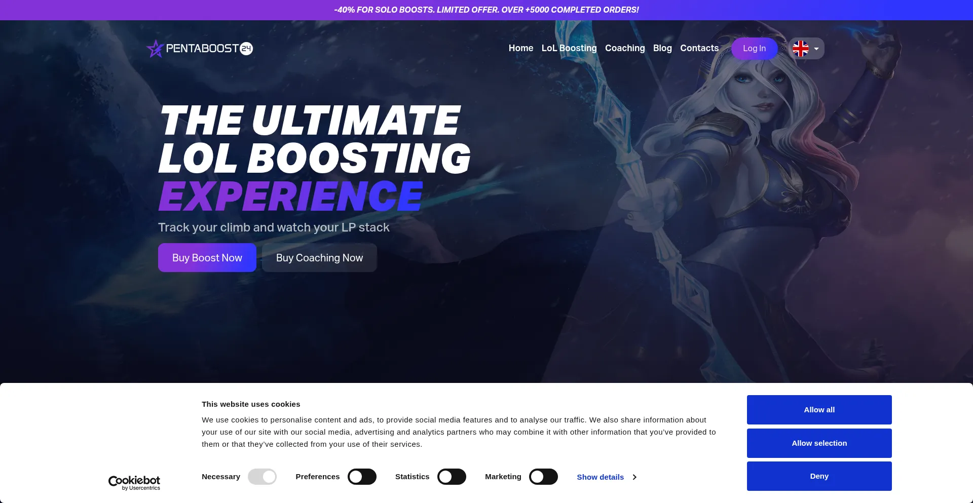 Boost your League of Legends rank with Pentaboost24's premium Elo boosting. Affordable, fast, and secure LoL boosting to reach your desired rank. Choose Pentaboost24 for top-tie...