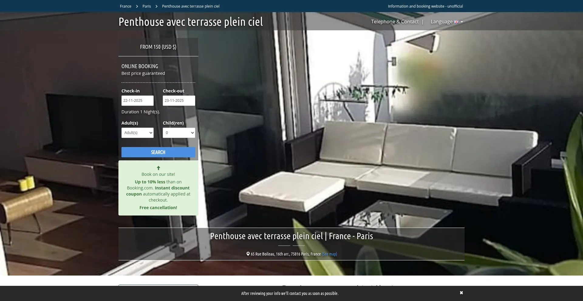 Have you had a personal experience with Penthouseavecterrassepleinciel.la-fr.com?