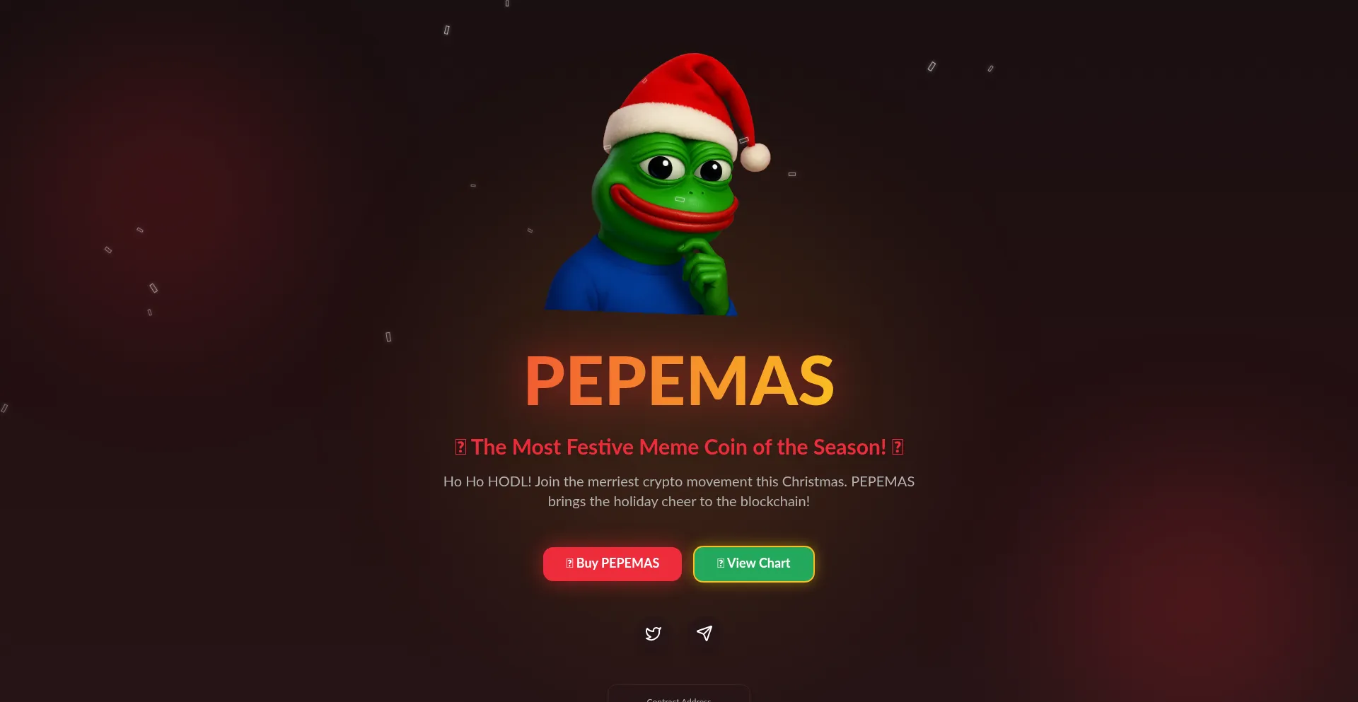 PEPEMAS brings Christmas cheer to the blockchain! Join the most festive meme coin community this holiday season. Ho Ho HODL!