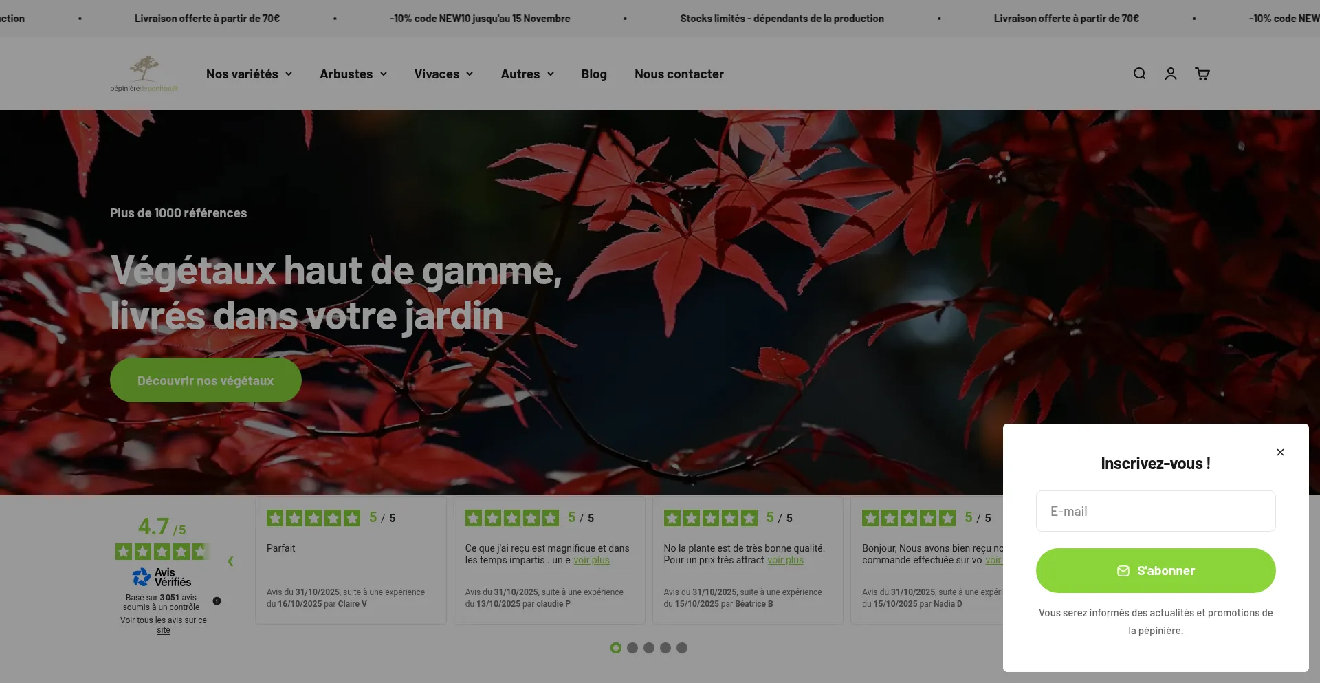 Vente en ligne de végétaux. Plantes d'extérieur. La pépinière de Penhouët produit et vend des plants et végétaux. Livraison en 48h. Pépinière et jardinerie en ligne.