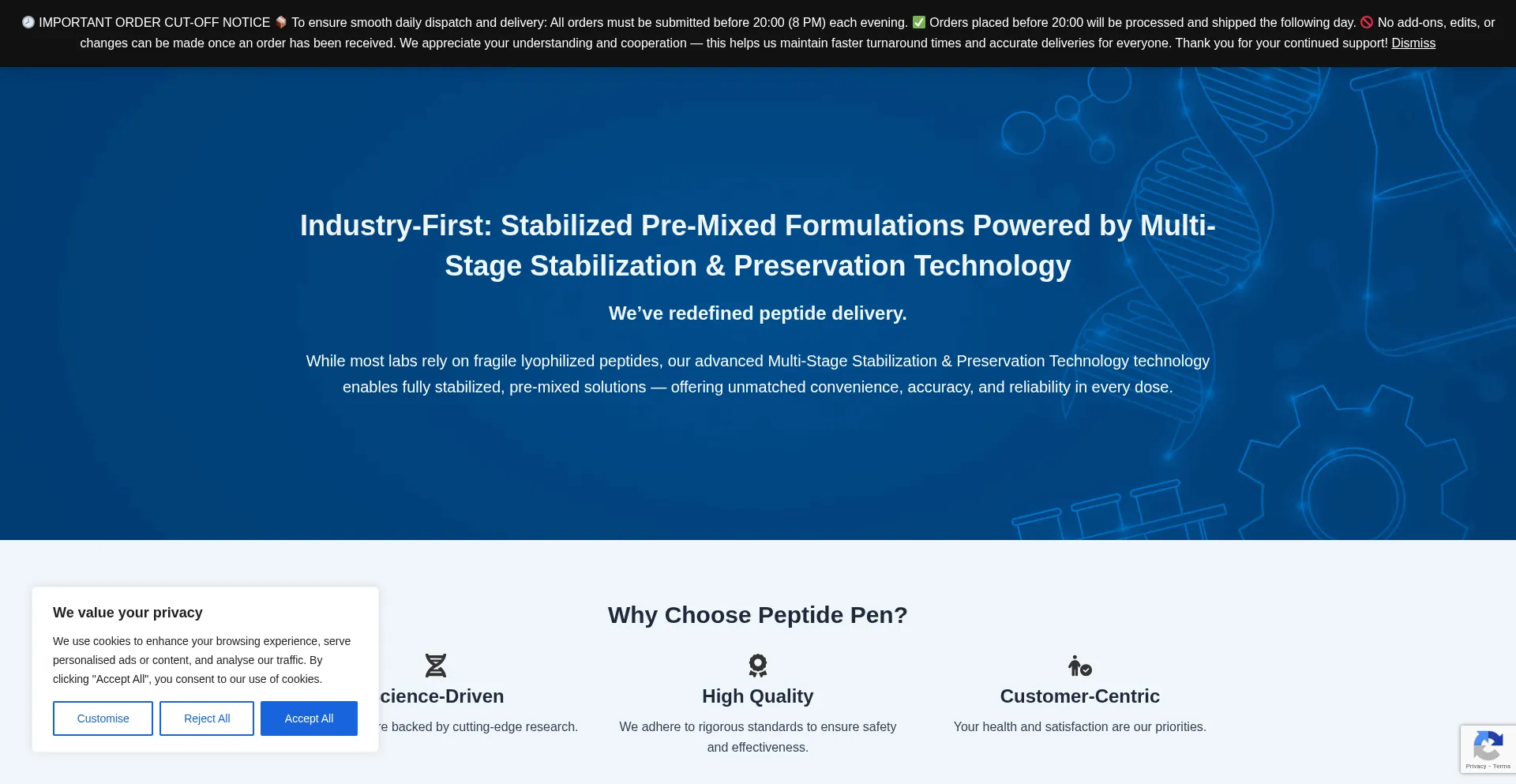The website implements cookie consent mechanisms in compliance with privacy regulations such as GDPR or CCPA. This demonstrates that peptidepen.co.za adheres to data protection standards and provides users with control over personal data collection practices.