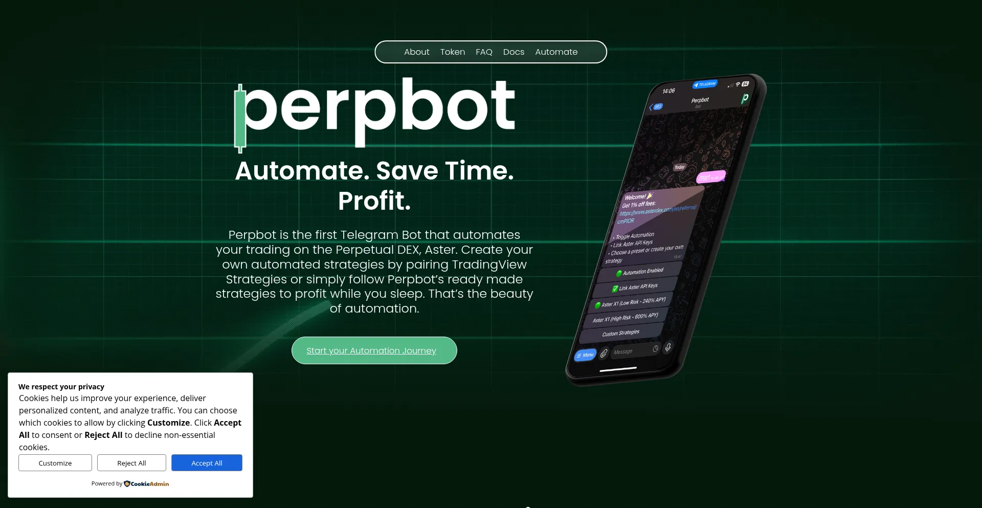 The website implements cookie consent mechanisms in compliance with privacy regulations such as GDPR or CCPA. This demonstrates that perpbot.io adheres to data protection standards and provides users with control over personal data collection practices.