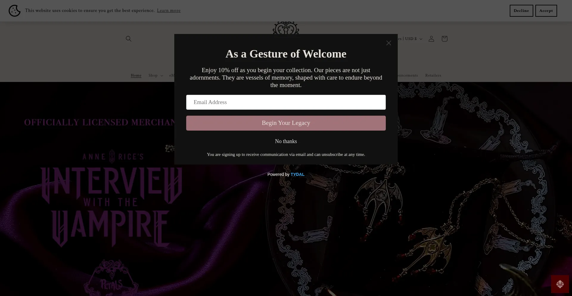 The website implements cookie consent mechanisms in compliance with privacy regulations such as GDPR or CCPA. This demonstrates that petalsandpoison.com adheres to data protection standards and provides users with control over personal data collection practices.