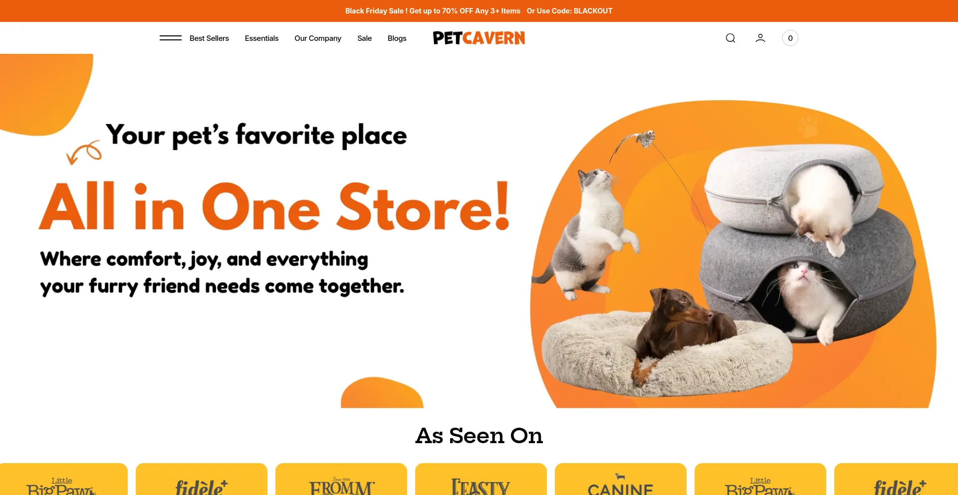 Our analyzer determines that website petcavern.com is using Shopify CMS. Shopify is a popular e-commerce platform, powering around 4.4% of websites globally.