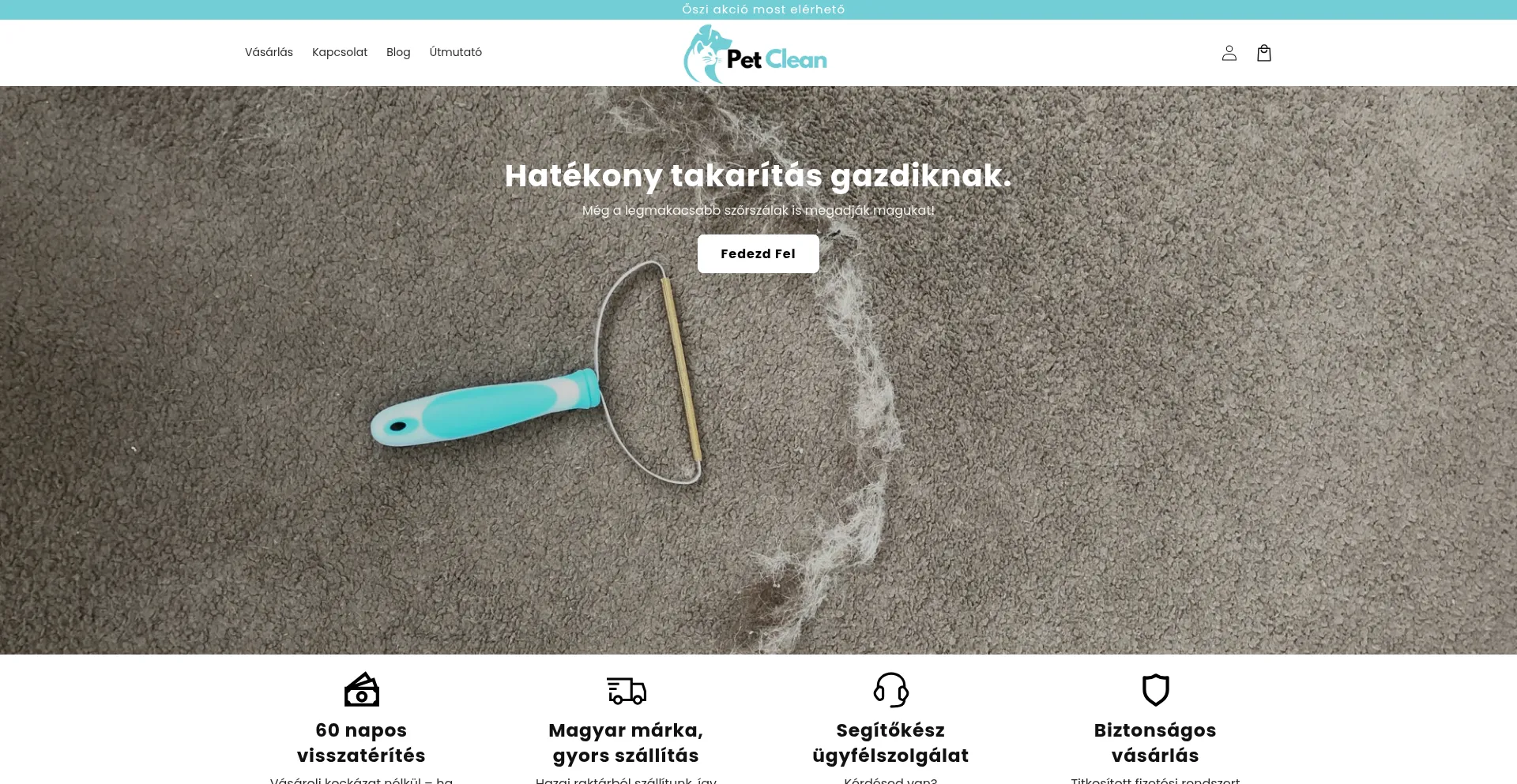 Analysis indicates that petclean.hu operates as an e-commerce platform facilitating online transactions for goods or services. The website implements shopping cart functionality, payment processing systems, and product catalog features typical of commercial retail operations.