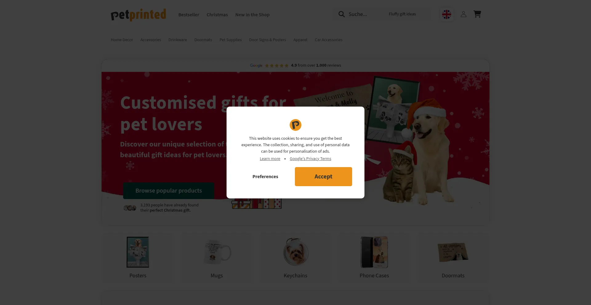 The website implements cookie consent mechanisms in compliance with privacy regulations such as GDPR or CCPA. This demonstrates that petprinted.co.uk adheres to data protection standards and provides users with control over personal data collection practices.