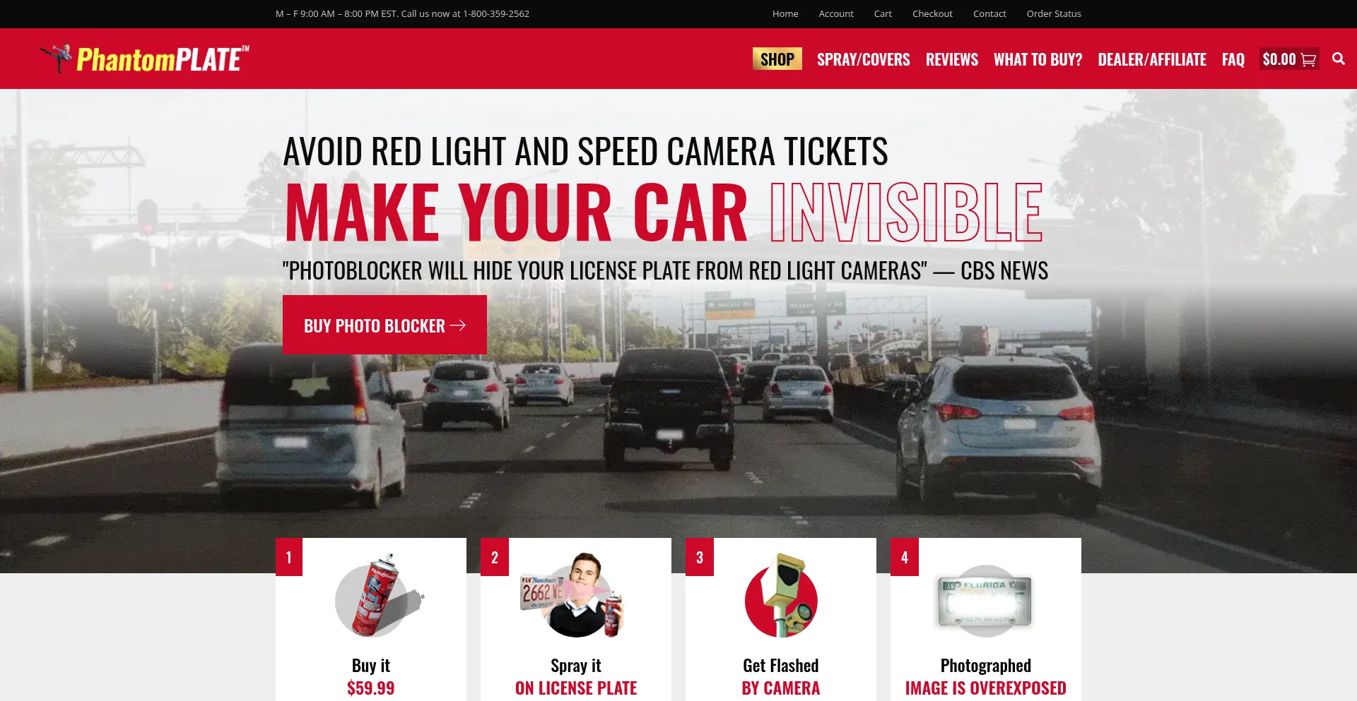Phantom plate offers license plate covers, photo blockers spray for privacy. Buy anti-camera Phantom plates and photoblocker sprays online.