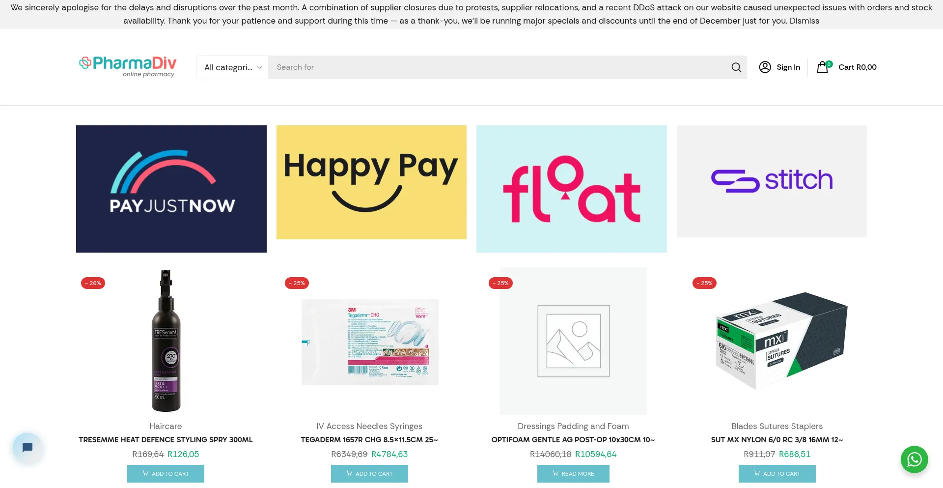 Analysis indicates that pharmadiv.co.za operates as an e-commerce platform facilitating online transactions for goods or services. The website implements shopping cart functionality, payment processing systems, and product catalog features typical of commercial retail operations.