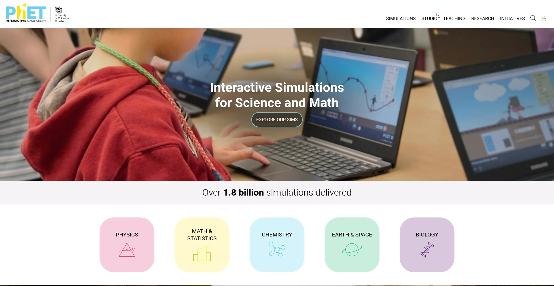 Free science and math simulations for teaching STEM topics, including physics, chemistry, biology, and math, from University of Colorado Boulder