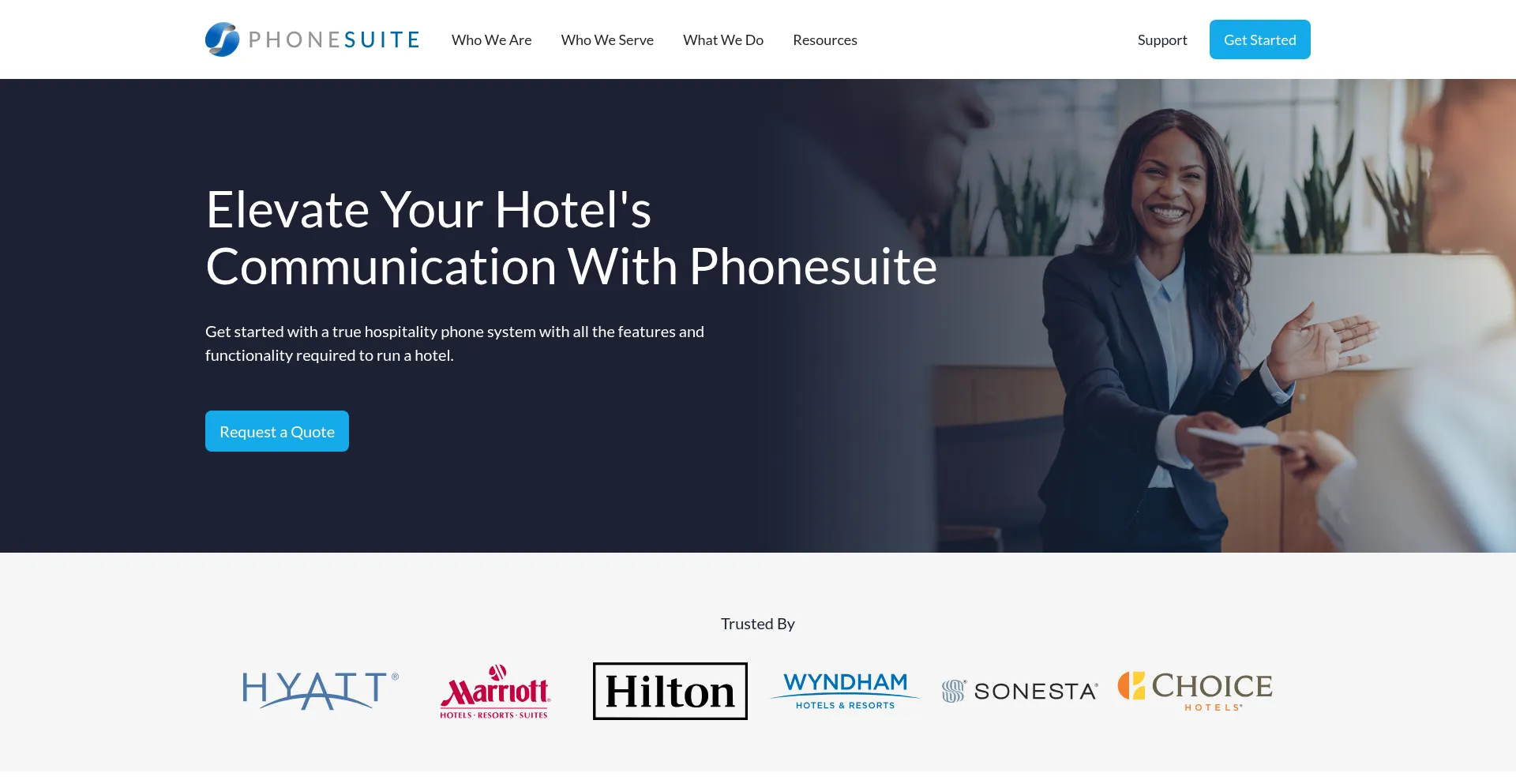 Phonesuite provides a wide array of flexible, innovative communications solutions designed specifically for hotels. Elevate your communications today.