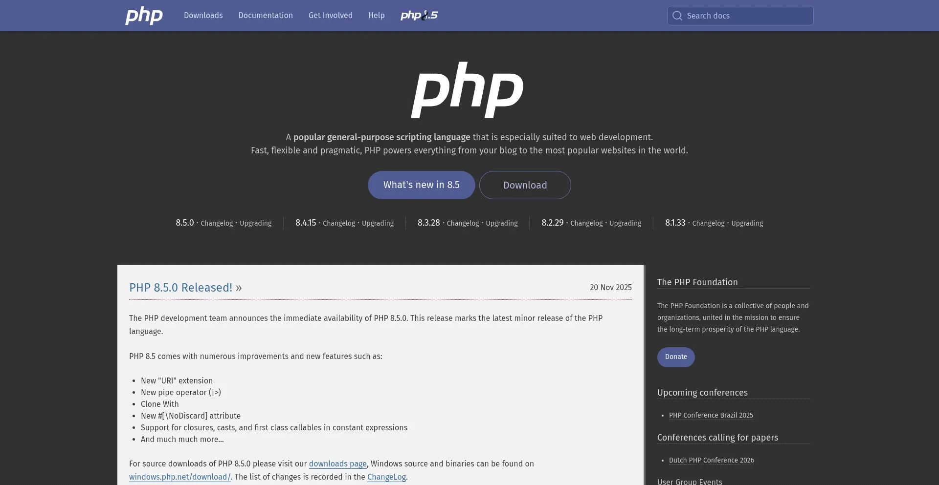 downloads.php.net php.net github.com www.linkedin.com thephp.foundation twitter.com analytics.php.net wiki.php.net www.php.net fosstodon.org +3 more