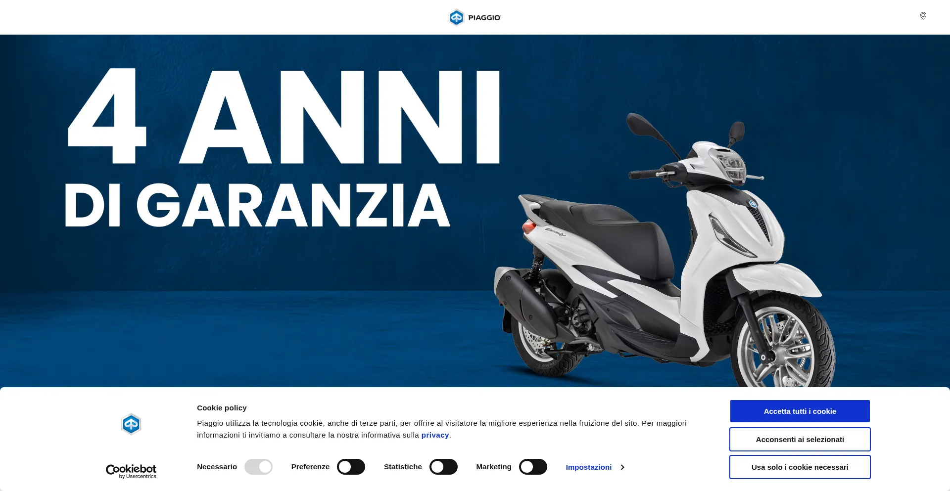 The website implements cookie consent mechanisms in compliance with privacy regulations such as GDPR or CCPA. This demonstrates that piaggio.it adheres to data protection standards and provides users with control over personal data collection practices.