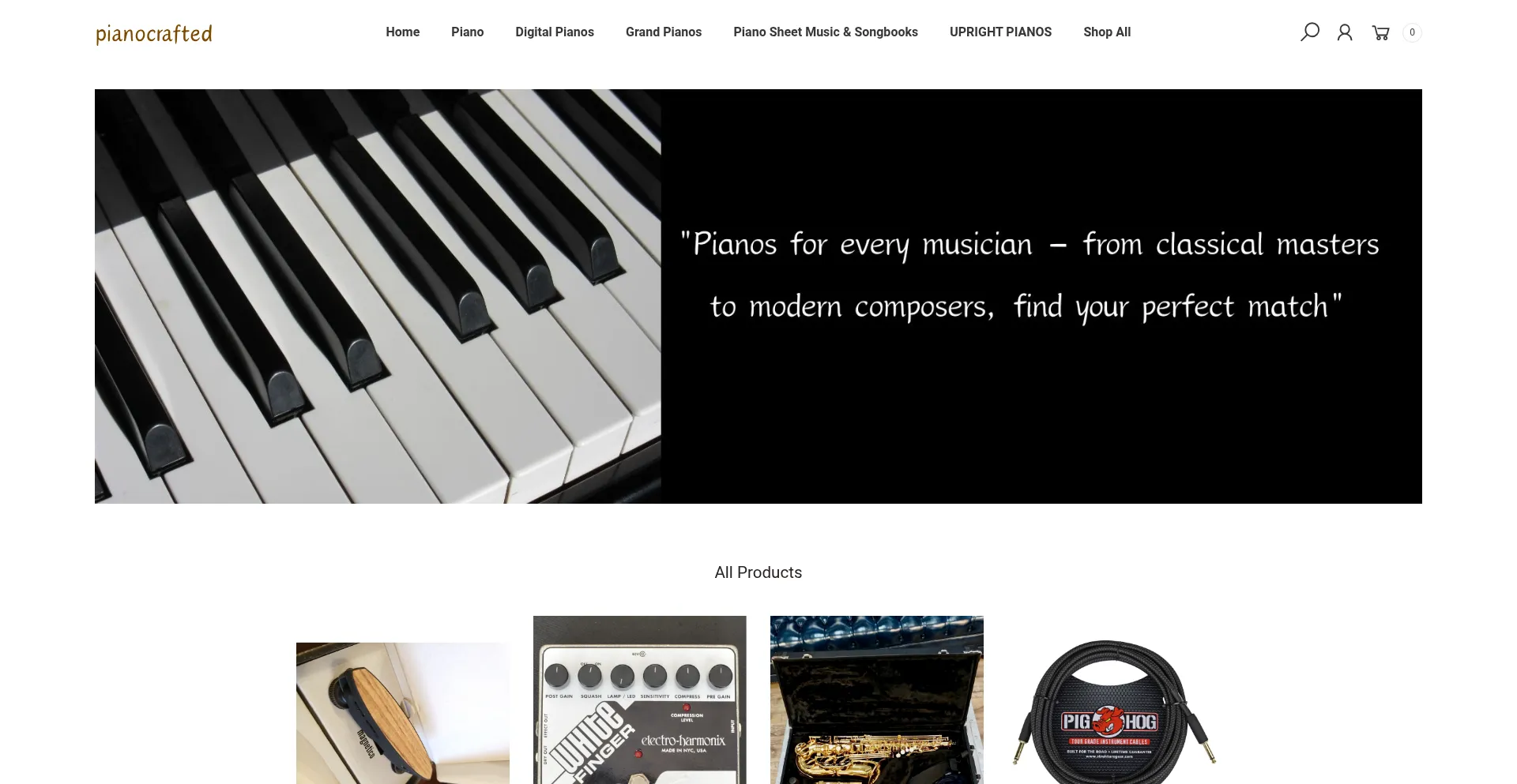 Analysis indicates that pianocrafted.com operates as an e-commerce platform facilitating online transactions for goods or services. The website implements shopping cart functionality, payment processing systems, and product catalog features typical of commercial retail operations.